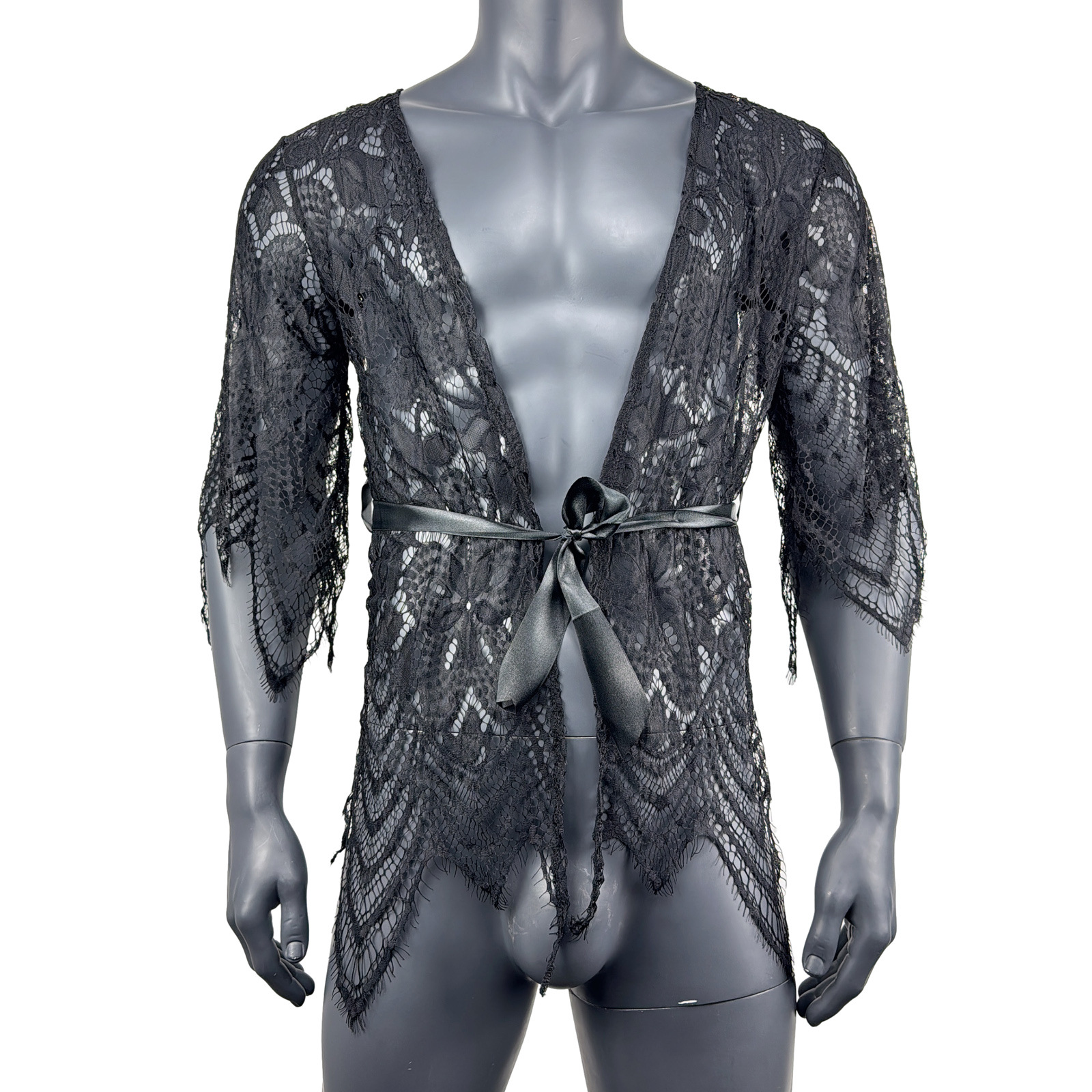 Мужская сексуальная ночная одежда CLEVER-MENMODE: прозрачный сетчатый халат-ночнушка оптом на экспорт