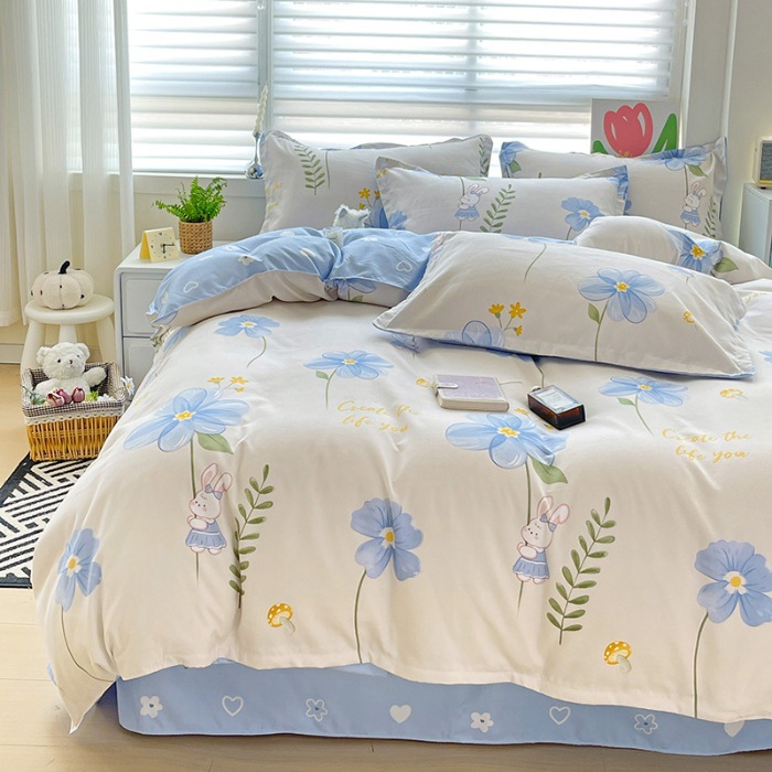 Оптовая Продажа с фабрики толстый хлопковый шлифовальный комплект из четырех предметов весенне-осенние простыни пододеяльник маленький свежий набор из трех предметов поколение волос