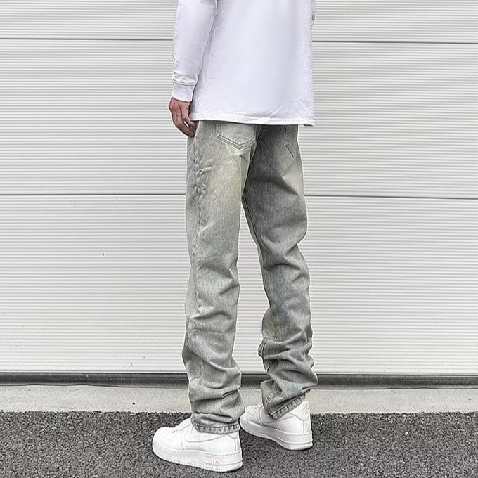 Желтая грязевая краска джинсы мужской vibe европейский и американский стиль прямой дизайн молнии
