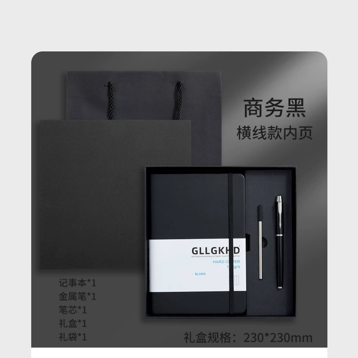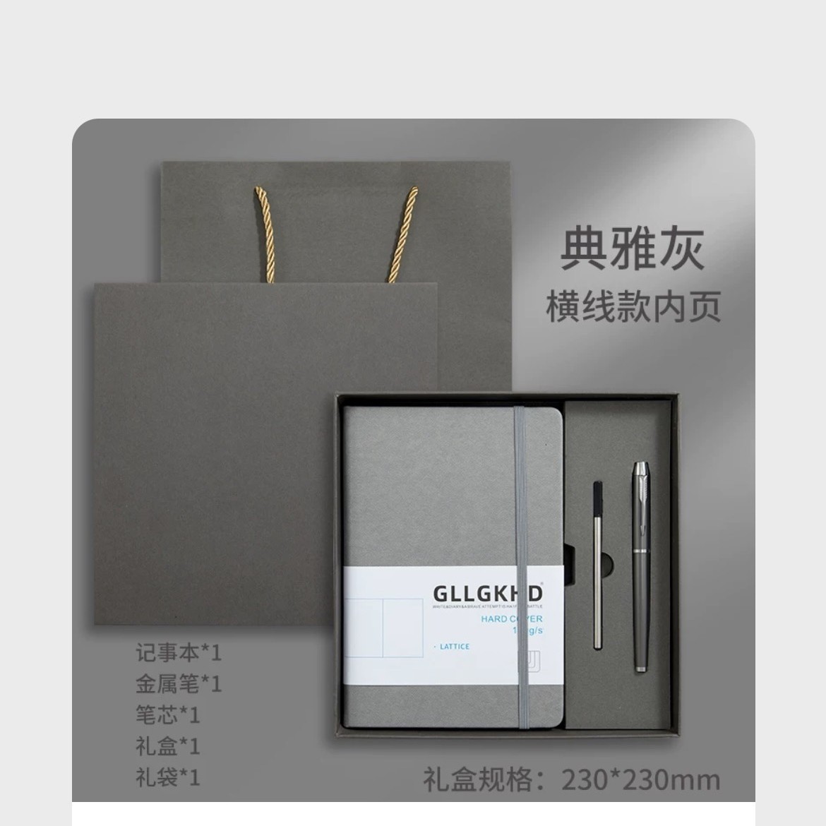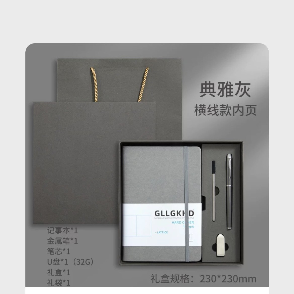 Серый + сменный блок + ручка для подписи + U-диск + подарочный пакет в подарочной коробке