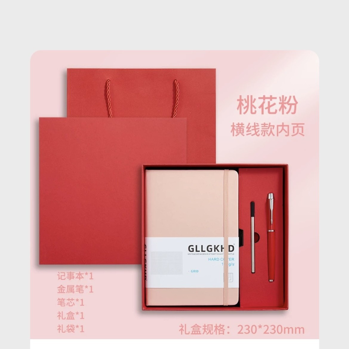 Розовый + сменный блок + ручка + подарочная коробка подарочный пакет
