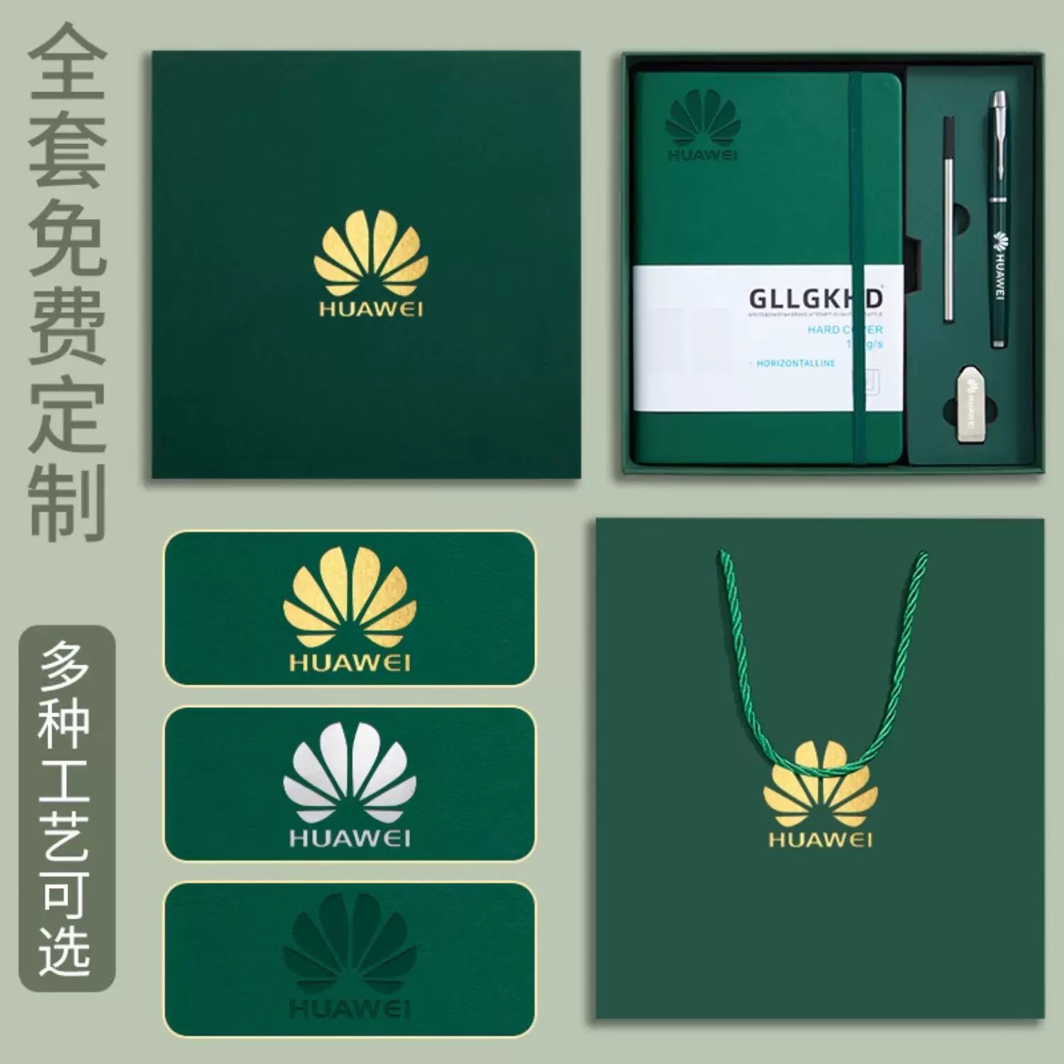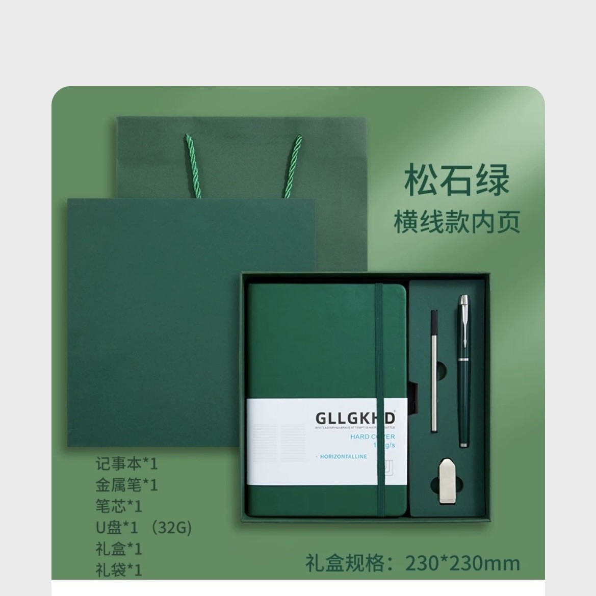Зеленый + сменный блок + ручка для подписи + U-диск + подарочный пакет в подарочной коробке