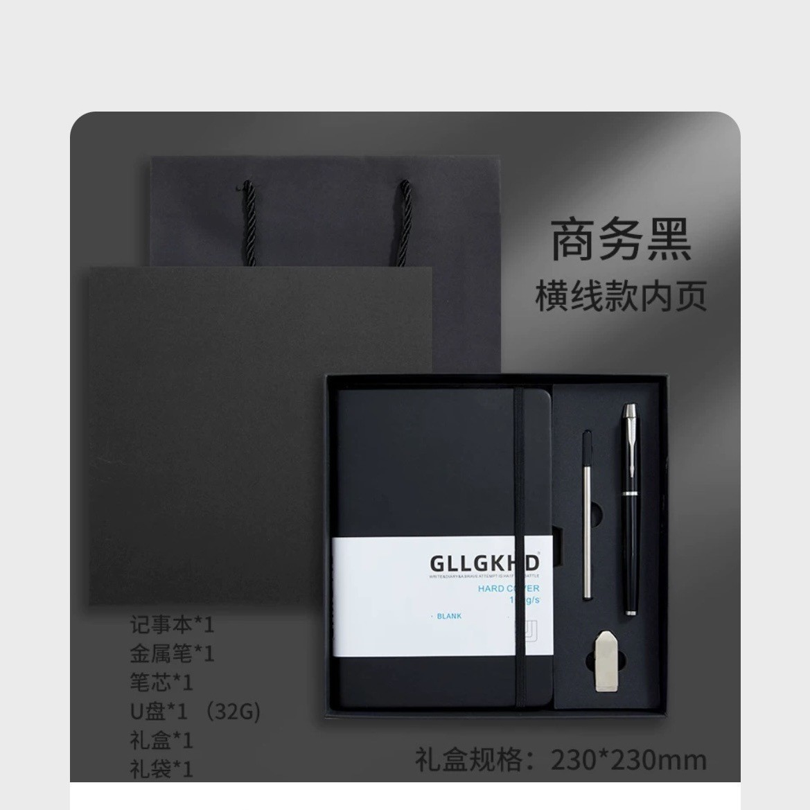 Черный + сменный блок + ручка для подписи + U-диск + подарочный пакет