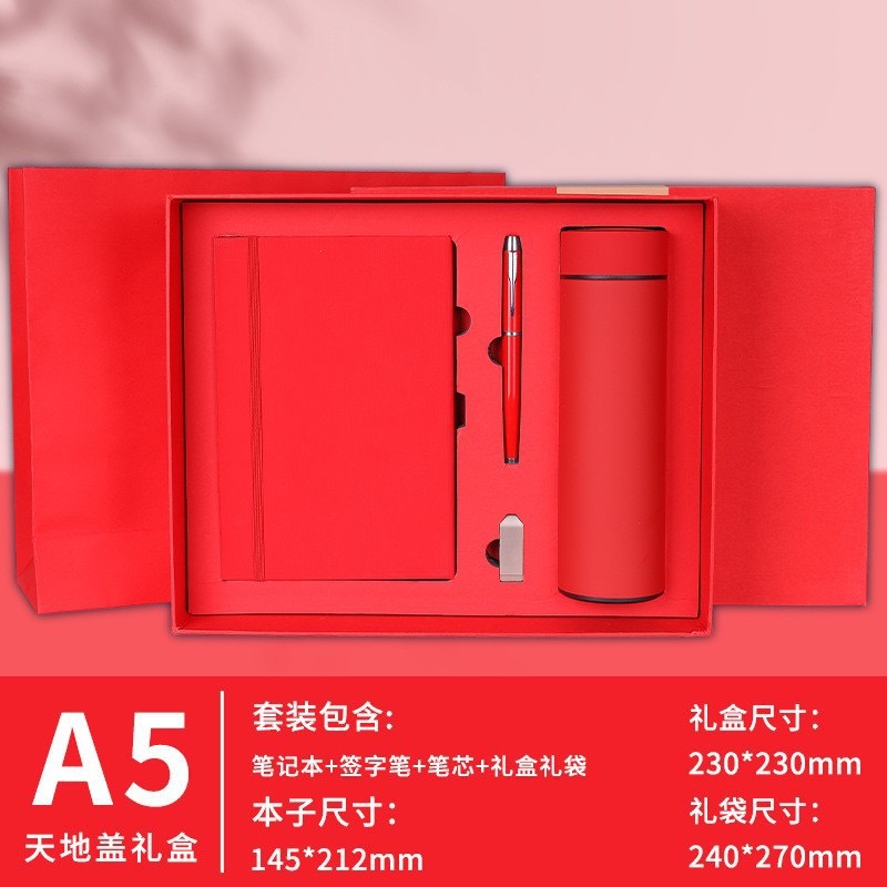 Красный + ручка для подписи + U-диск + термос на 500 мл + подарочная коробка и подарочный пакет