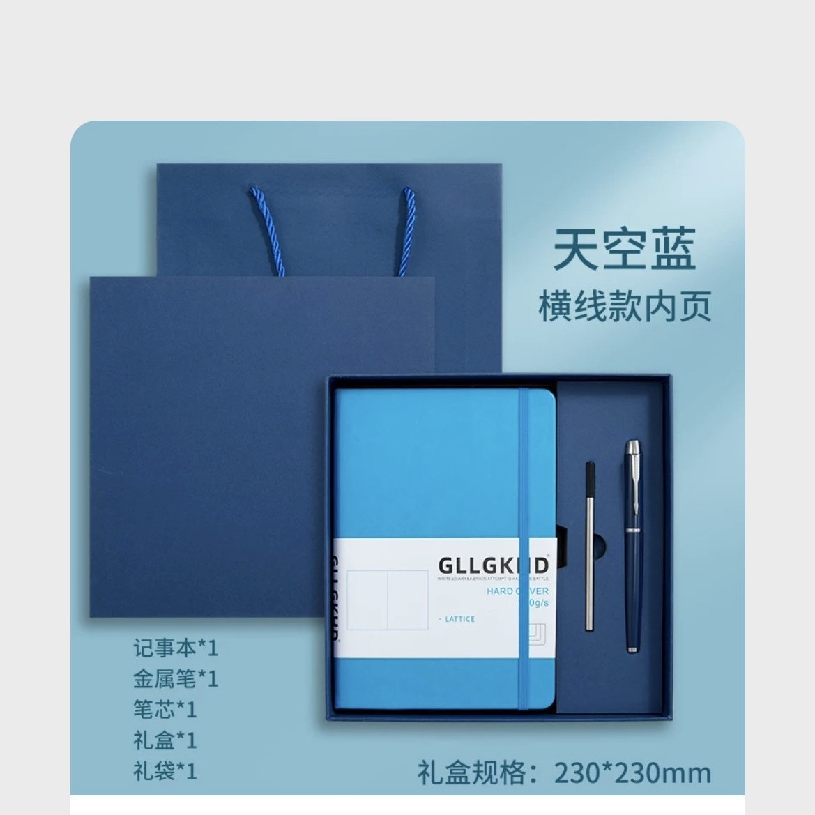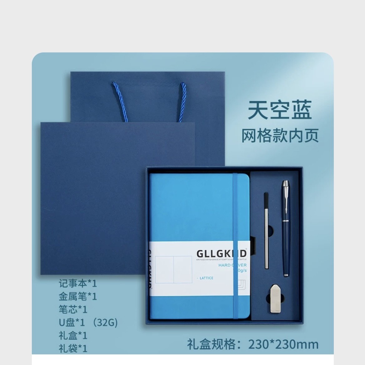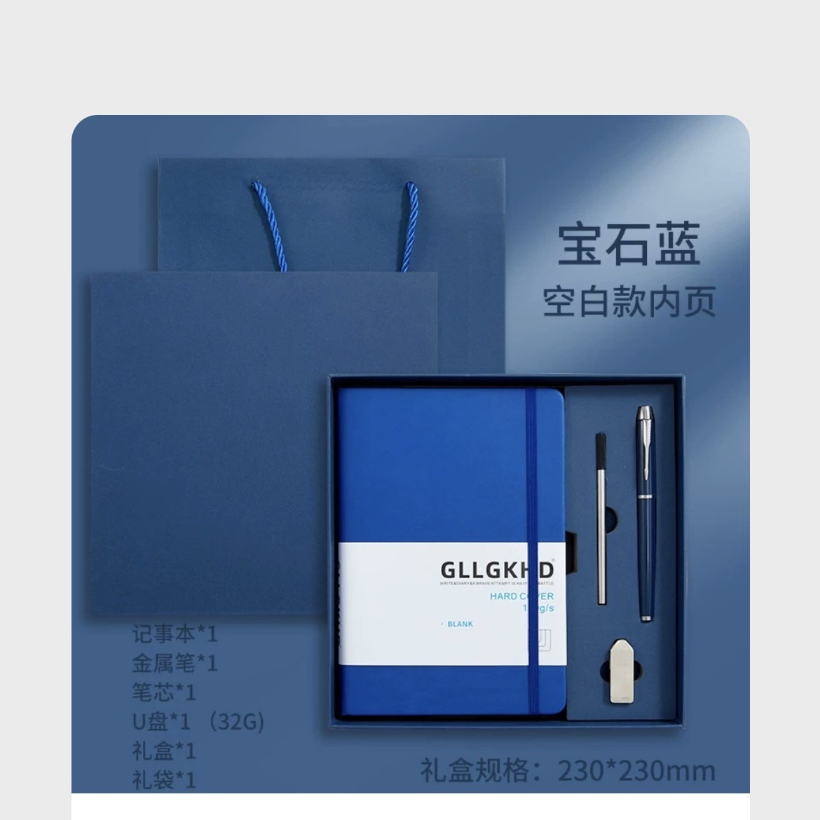 Синий + сменный блок + ручка для подписи + U-диск + подарочный пакет в подарочной коробке