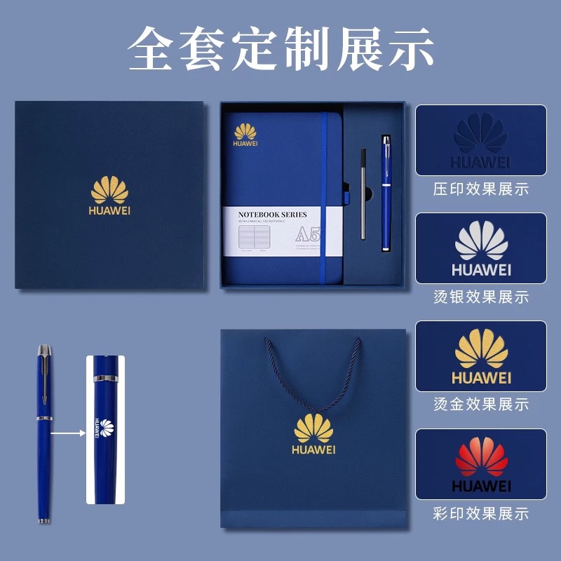 Темно-синий + сменный блок + ручка для подписи + U-диск + подарочная коробка, подарочный пакет