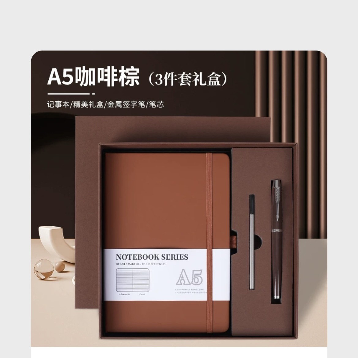 Кофейный коричневый + ручка + подарочная коробка, подарочный пакет