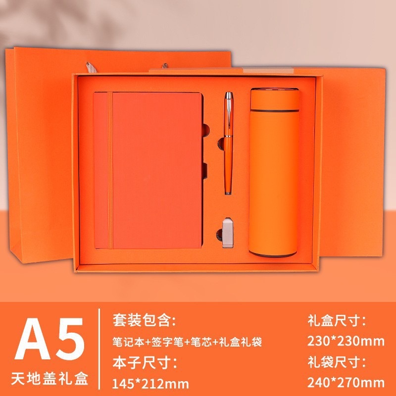 Оранжевый + ручка для подписи + U-диск + термос на 500 мл + подарочная коробка и подарочный пакет