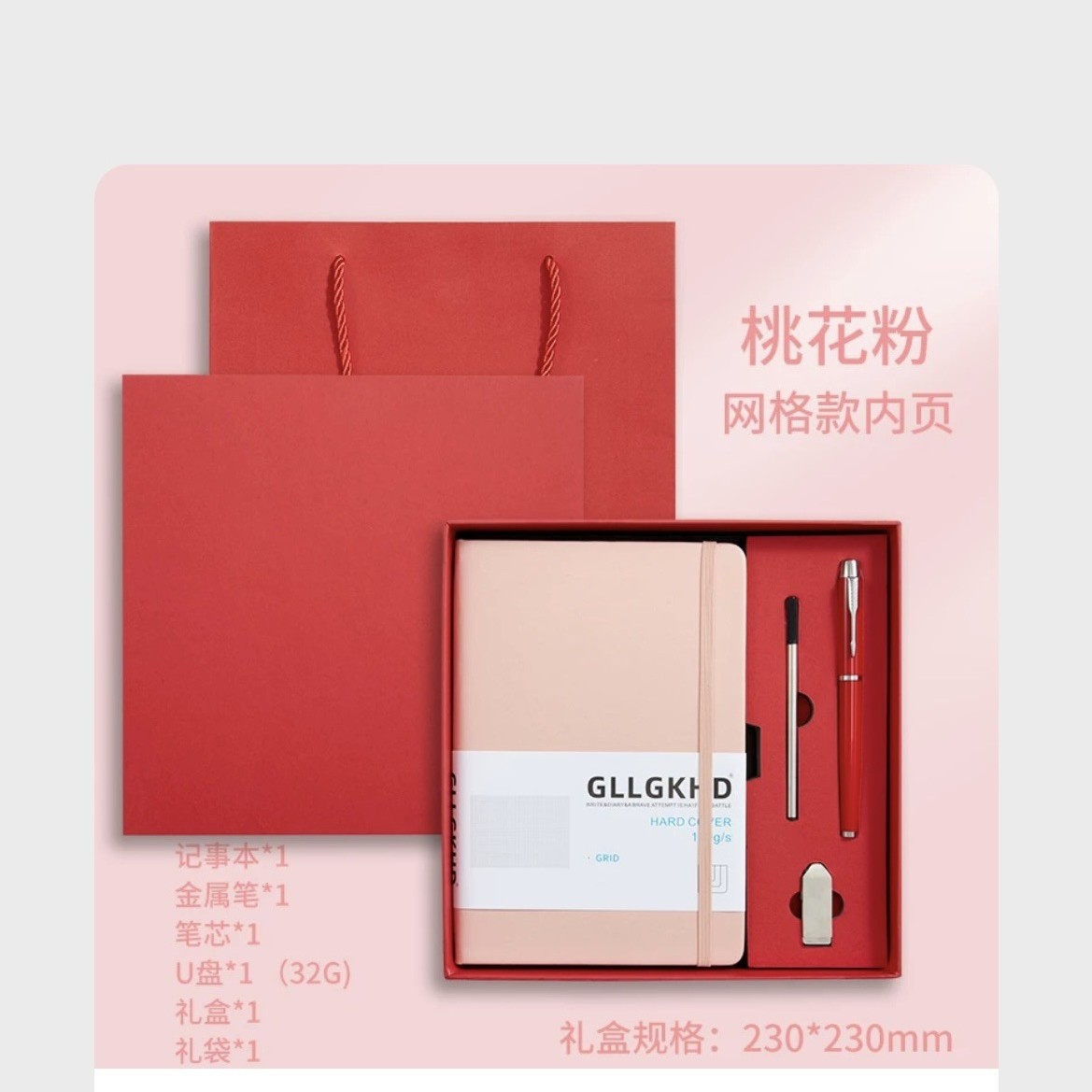 Розовый + сменный блок + ручка для подписи + U-диск + подарочный пакет в подарочной упаковке