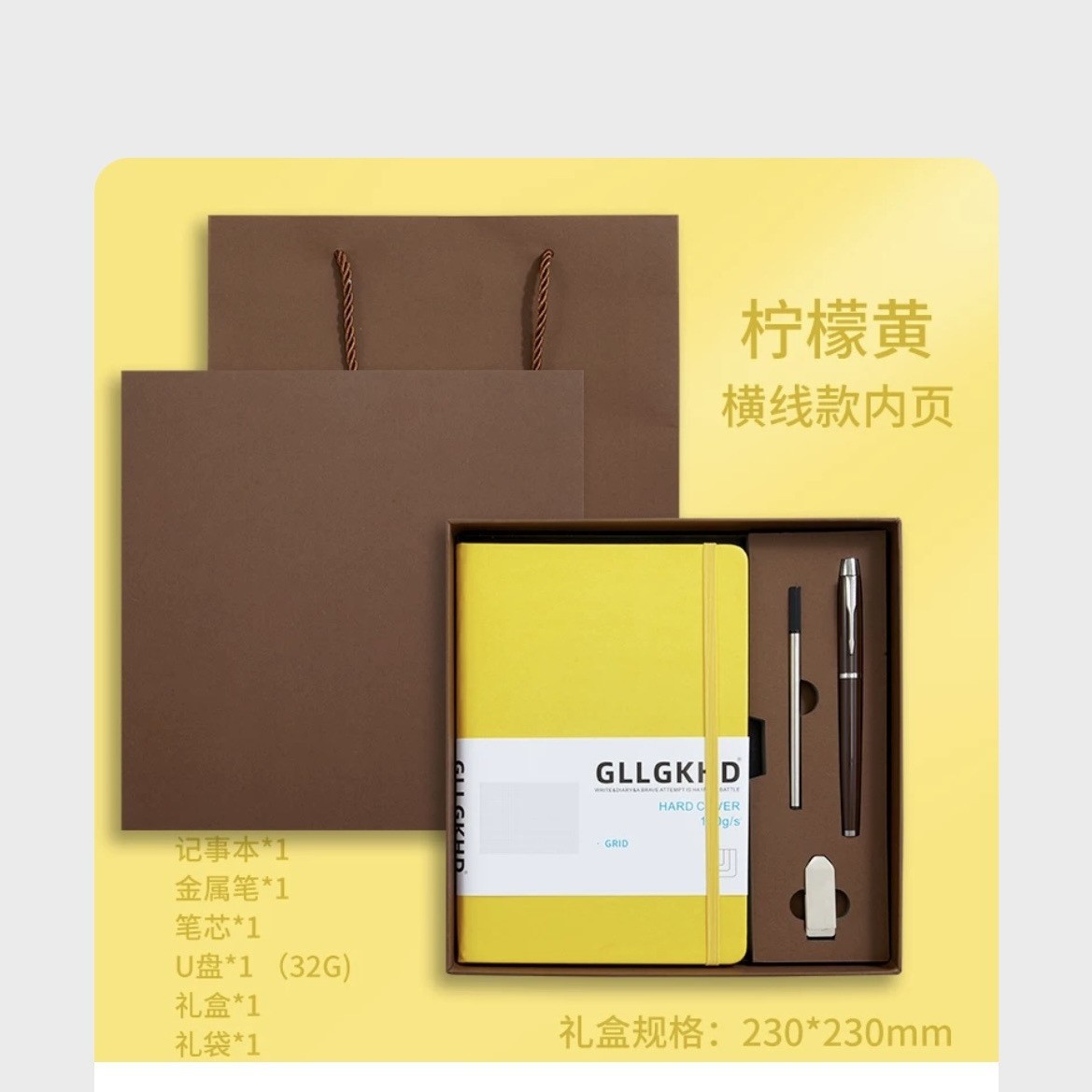 Желтый + сменный блок + ручка для подписи + U-диск + подарочный пакет