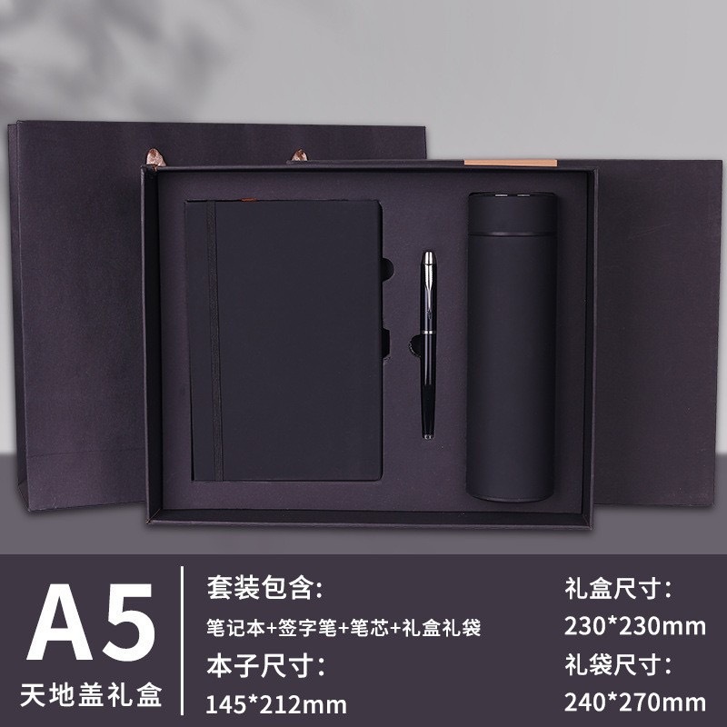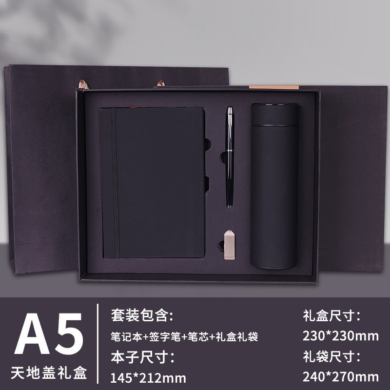 Черный + ручка для подписи + U-диск + термос на 500 мл + подарочная коробка и подарочный пакет