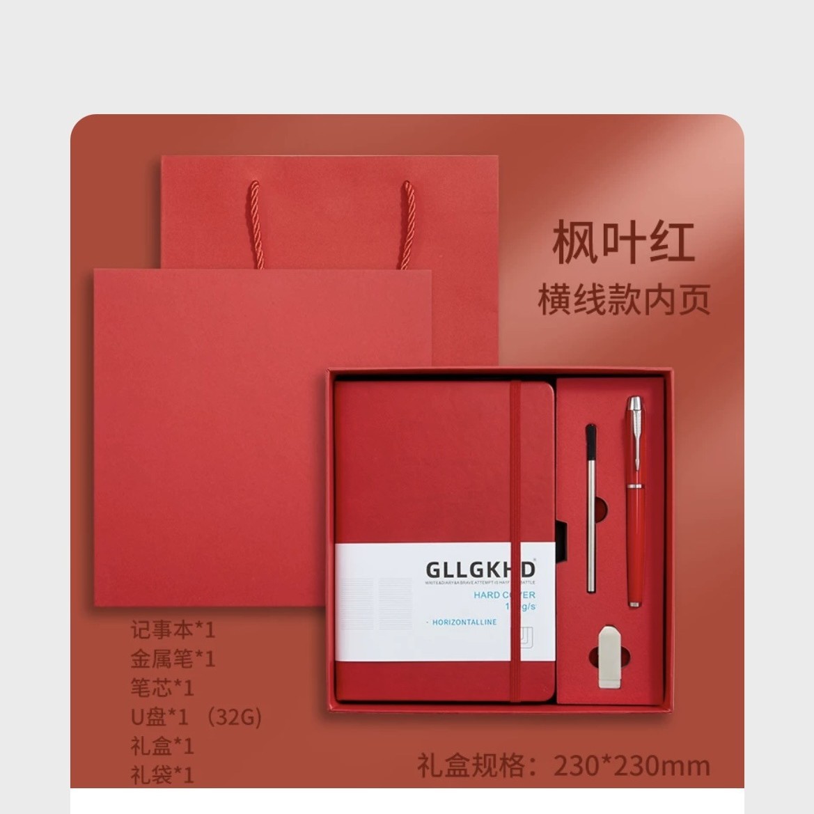 Красный + сменный блок + ручка для подписи + U-диск + подарочный пакет в подарочной коробке