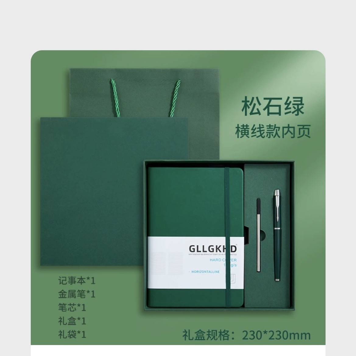 Зеленый + сменный блок + ручка + подарочная коробка, подарочный пакет