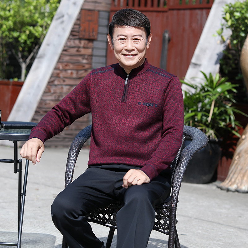 Главная страница > Мужской утолщенный свитер на флисовой подкладке для мужчин среднего и пожилого возраста, красный свитер на молнии, осенне-зимний теплый свитер для папы