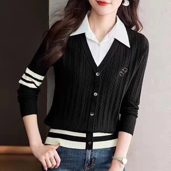 Главная страница > Корейская версия модного дизайна Чувство поддельные два трикотажа женские осенние и зимние новые воротники рубашки темперамент тонкие топы