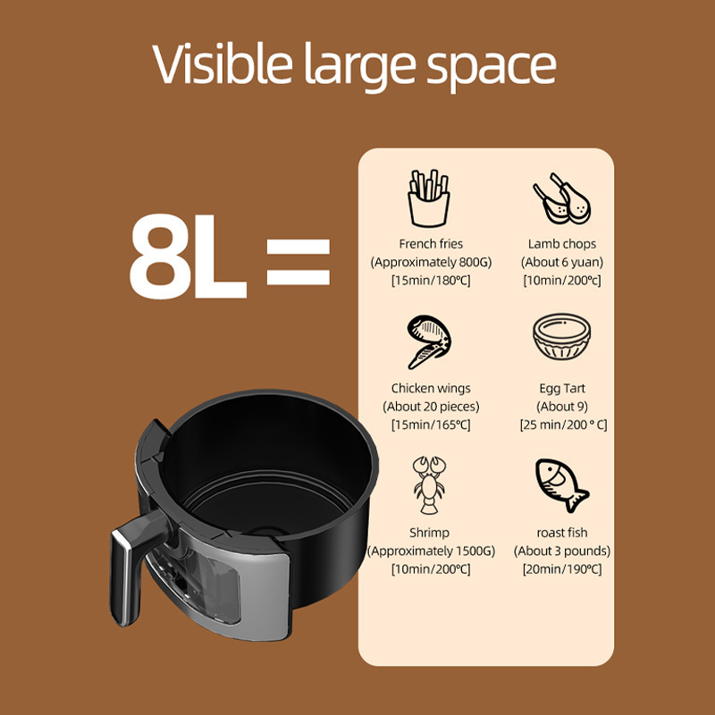 AIRFRYER2025 новая аэрофритюрница 8л бытовая большой емкости многофункциональная с индивидуальным визуальным управлением без переворачивания 110В