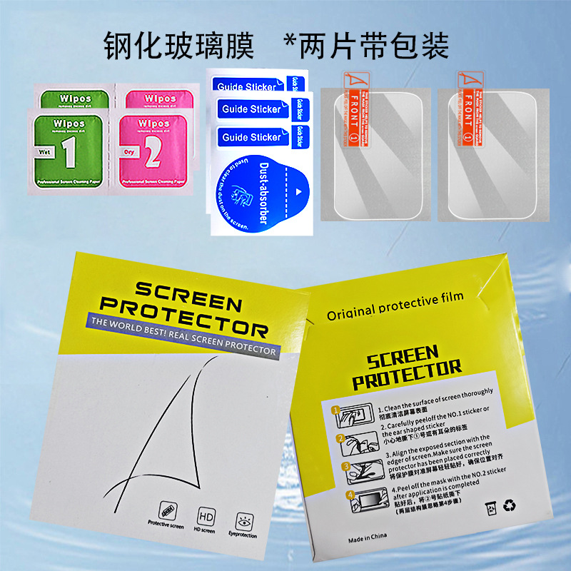 Пленка из закаленного стекла (две штуки, два сухих и влажных пакета, две пылезащитные наклейки)