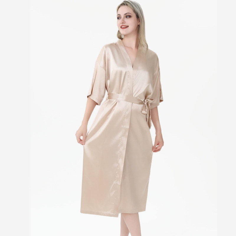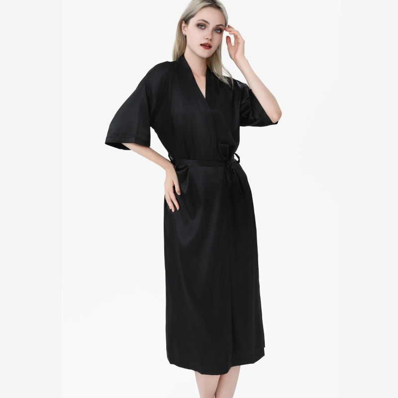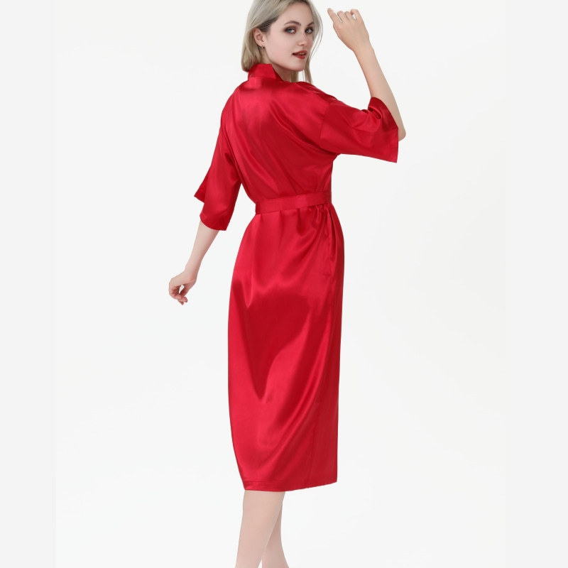 Главная страница > Европейская и американская удлиненная ночная рубашка из искусственного шелка, однотонный свадебный халат, женский кардиган, тонкий сексуальный атласный халат