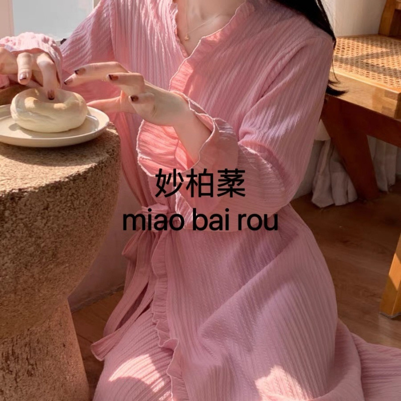 Главная страница > Милая ночная рубашка 2024, женская осенне-зимняя милая однотонная халат с v-образным вырезом на шнуровке, длинный утренний халат, домашняя одежда, пижамы