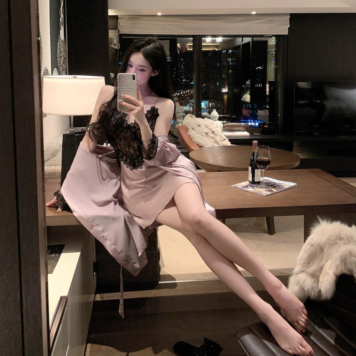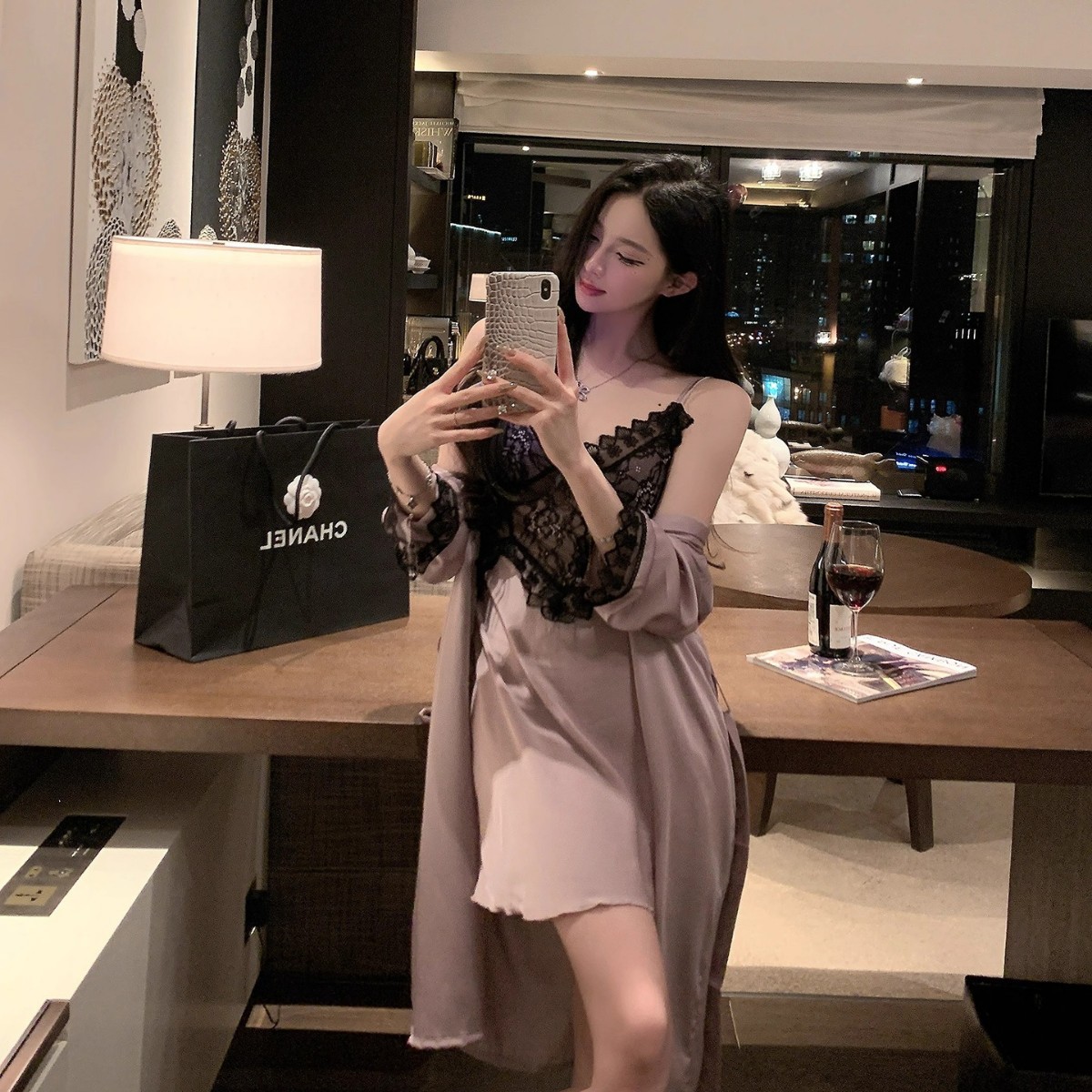 Xishi, немного сексуальная ночная рубашка на подтяжках из ледяного шелка, высококачественная ночная рубашка, домашняя одежда, кружевные пижамы, чистое желание для женщин