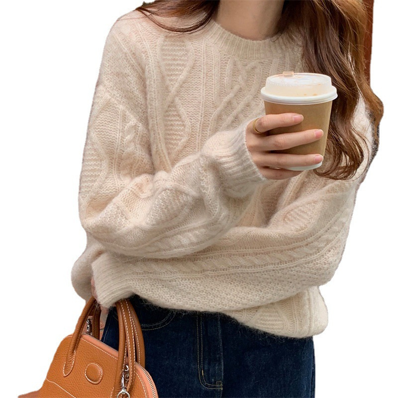 Главная страница > Lazy Wind Twist Алмазный вязаный свитер Мягкий вощеный ретро в японском стиле однотонный пуловер в Корейском стиле свободный утолщенный свитер женский модный