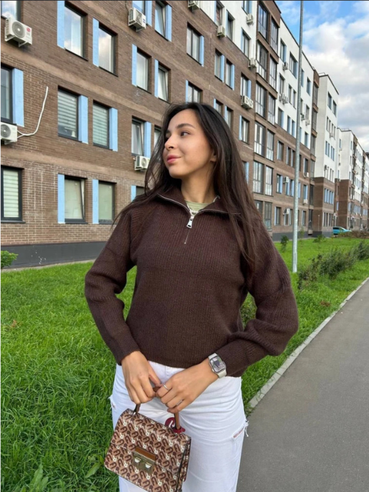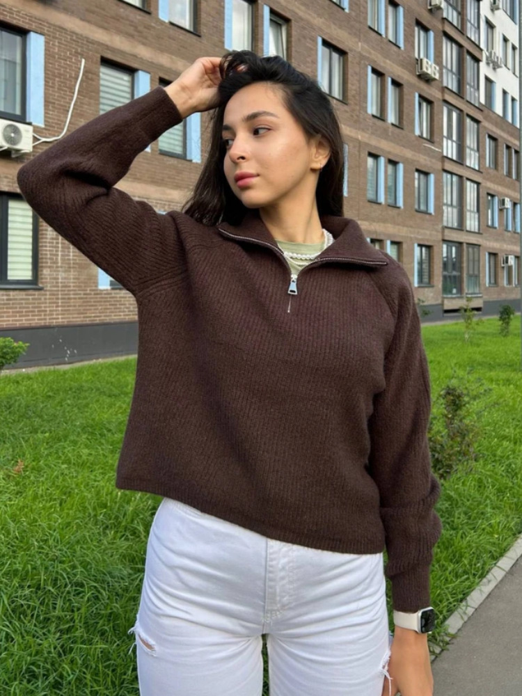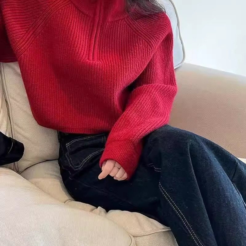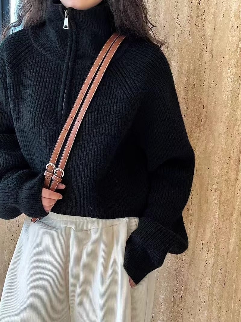 Главная страница > Новый осенне-зимний корейский стиль, свободный дизайн с воротником-стойкой, короткая молния на половину, утолщенный короткий трикотаж для женщин