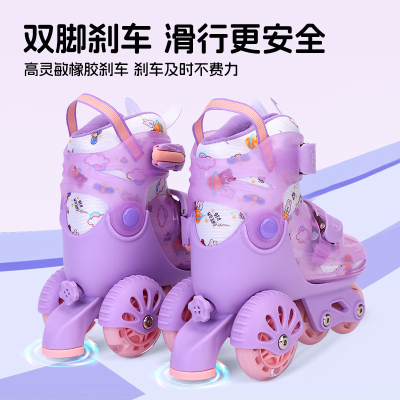 Детские роликовые коньки для начинающих, оптом, кросс-бордер, PU, четырехколесные, двухрядные, для мальчиков и девочек, комплект