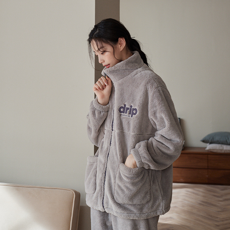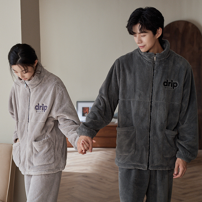 Осенние и зимние пары пижамы женские коралловые бархатные толстые и бархатные модные спортивные ветры можно носить на улице теплую мужскую домашнюю одежду