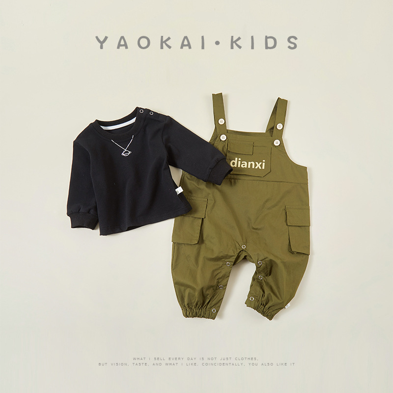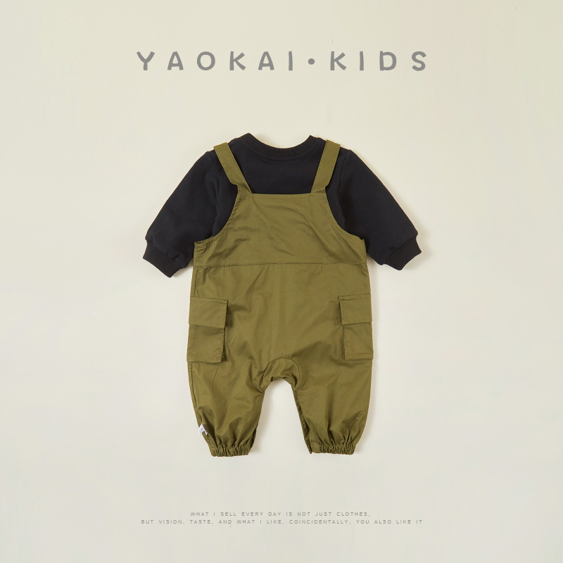 Детский Осенний комбинезон Одежда для мальчиков Красивый стиль Инструменты Ремешок Брюки Стильные Интернет Красные Брюки
