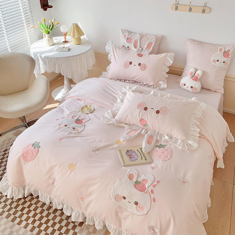 Главная страница > Комплект из четырех предметов из чистого хлопка для милой девушки, хлопковая простыня, детское постельное белье, пододеяльник в стиле кролика и принцессы