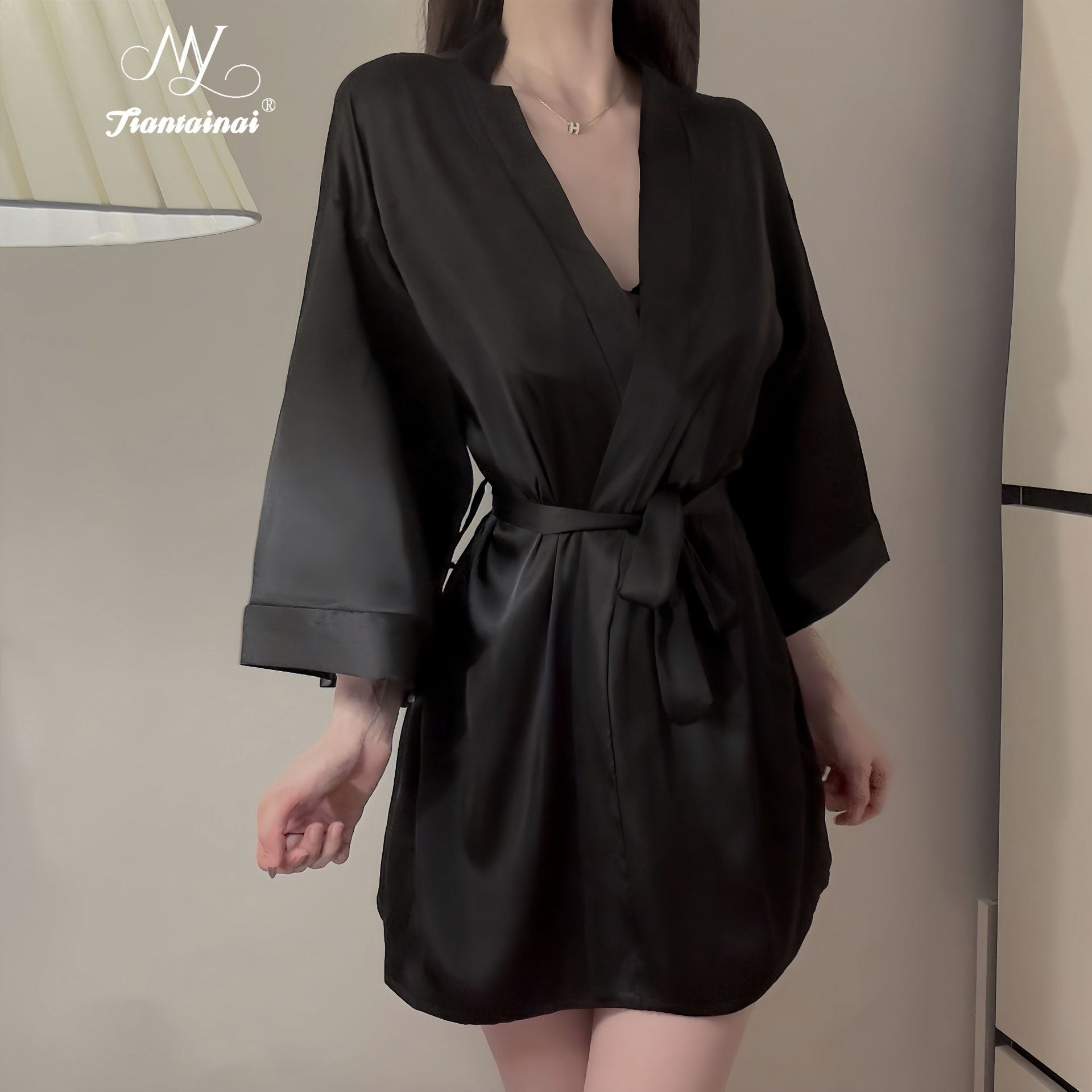 Главная страница > Летняя сексуальная пижама атласный кардиган с шнуровкой