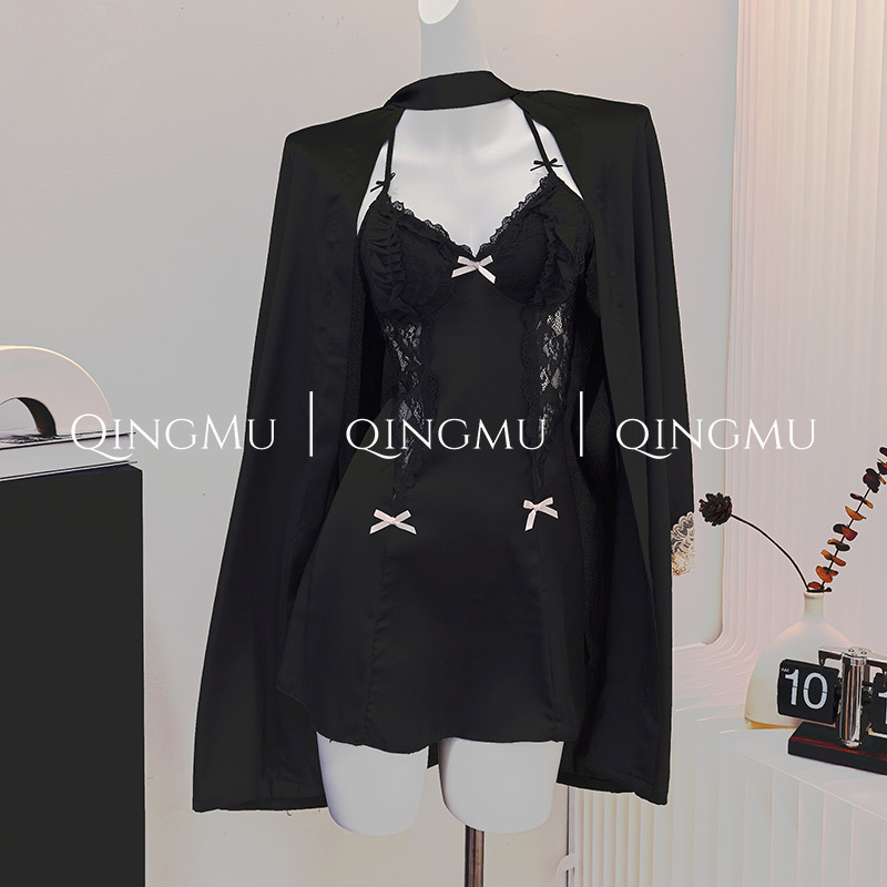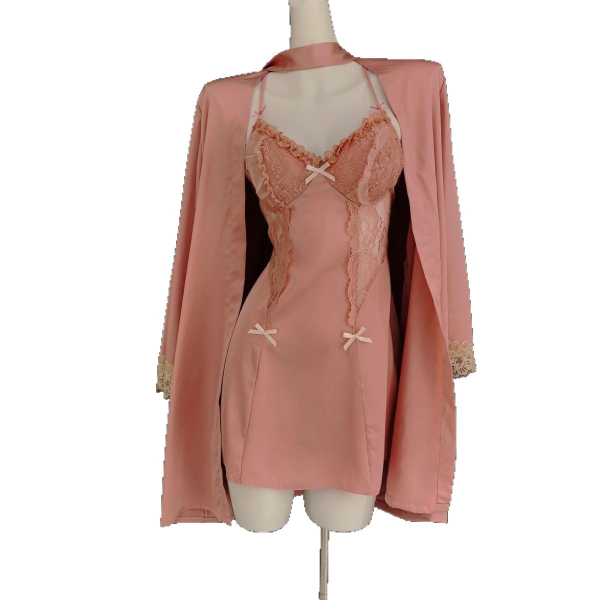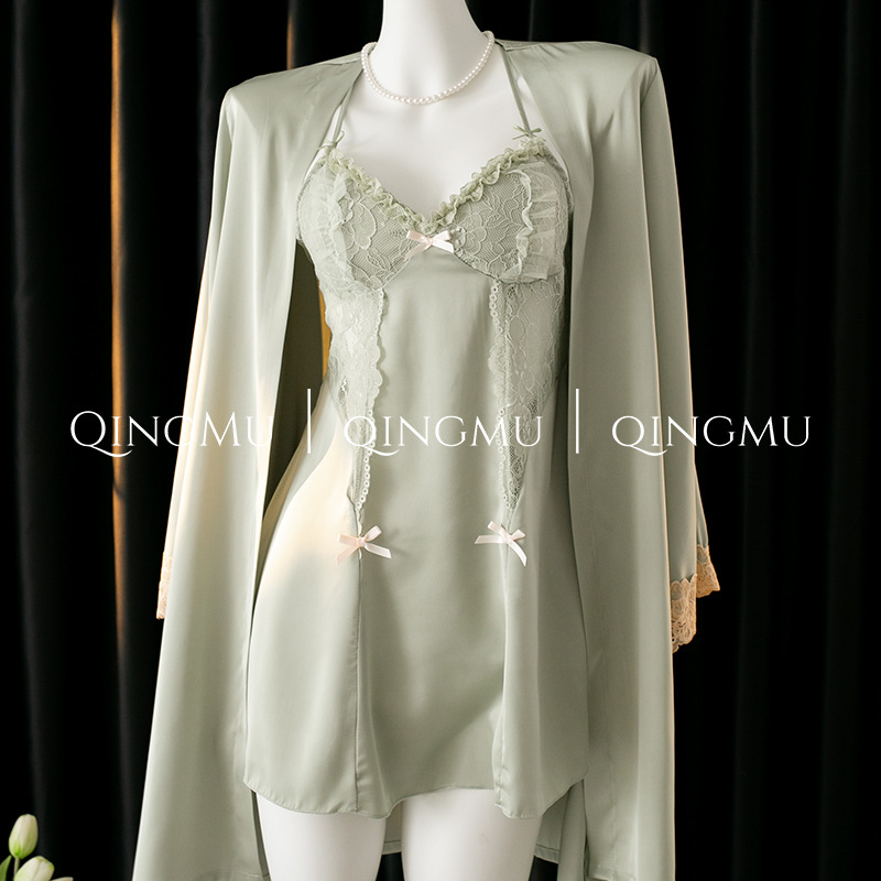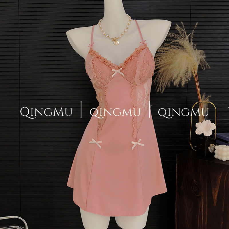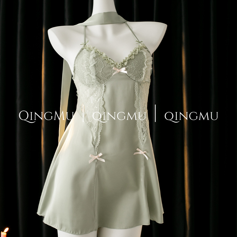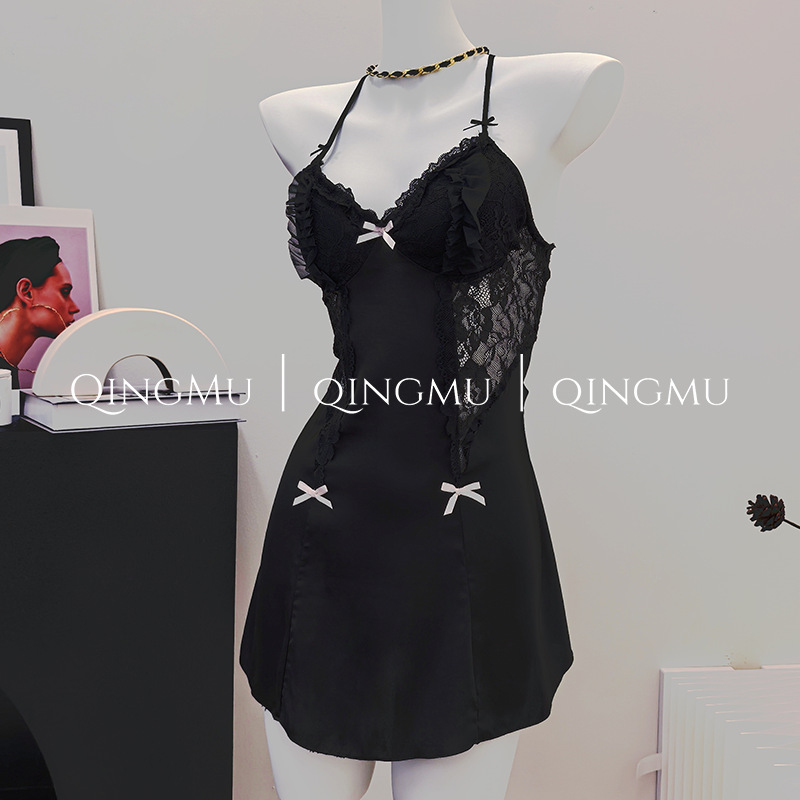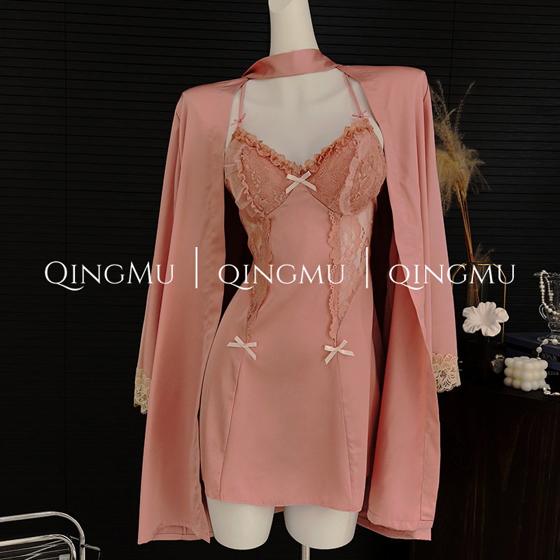 Главная страница > Кружевной полый чистый ветер юбка халат весной и летом новый стиль с нагрудным ковриком сексуальный ледяной шелк домашняя одежда женщины в прямом эфире