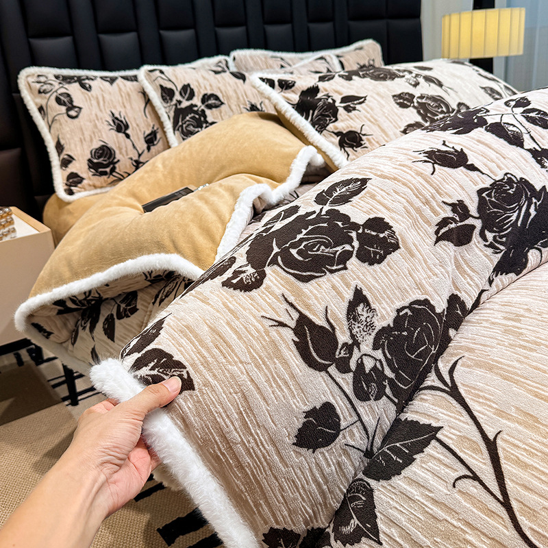 Главная страница > Набор постельного белья из четырех предметов: утолщенный, приятный для кожи, с объемной резьбой, из молочного вельвета, зимний, теплый, двусторонний флис, простыня, пододеяльник.