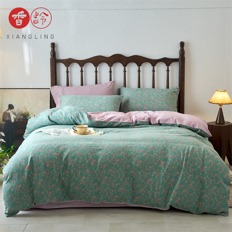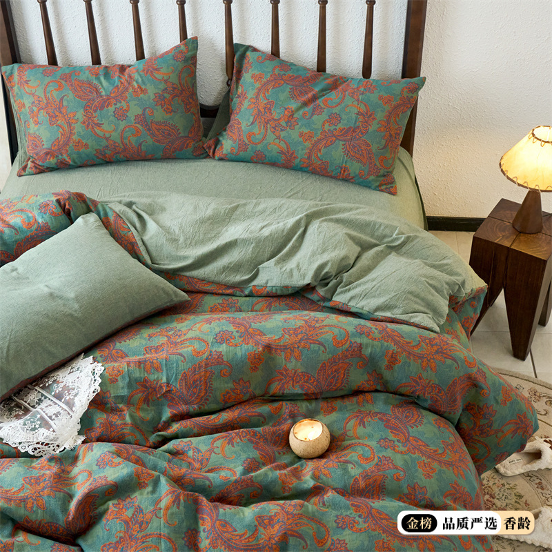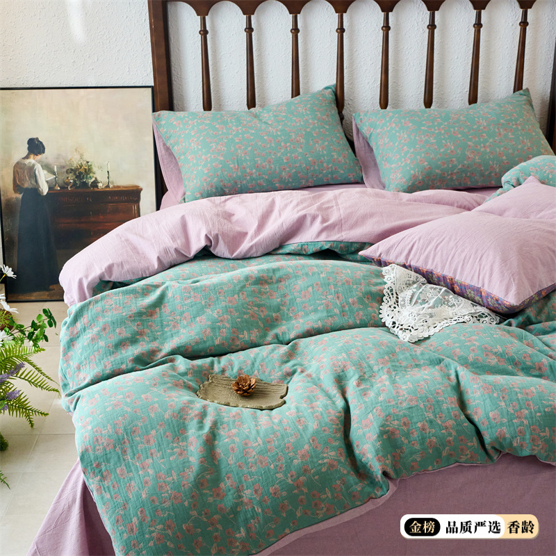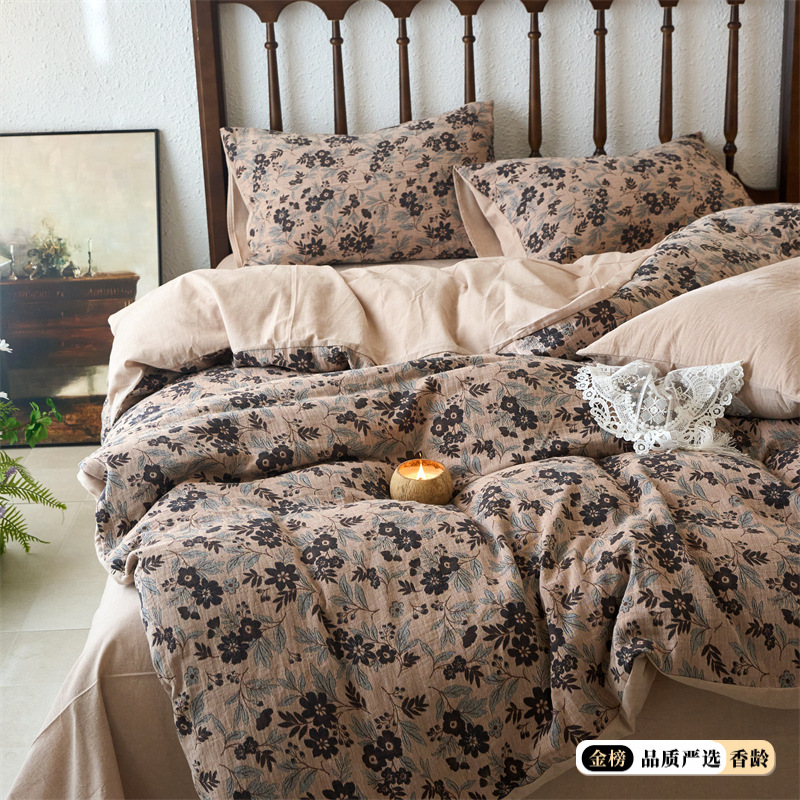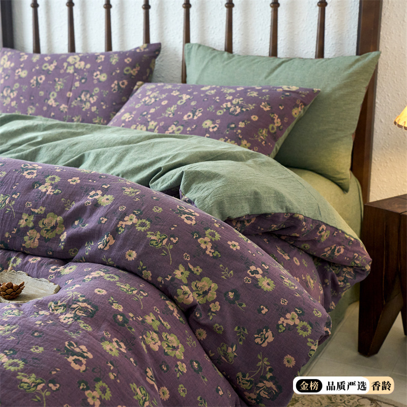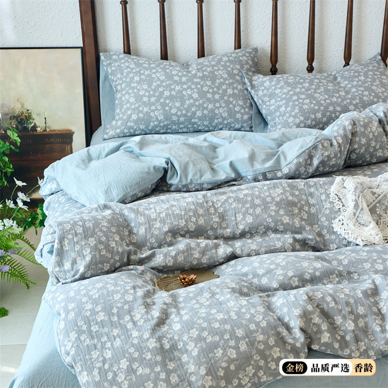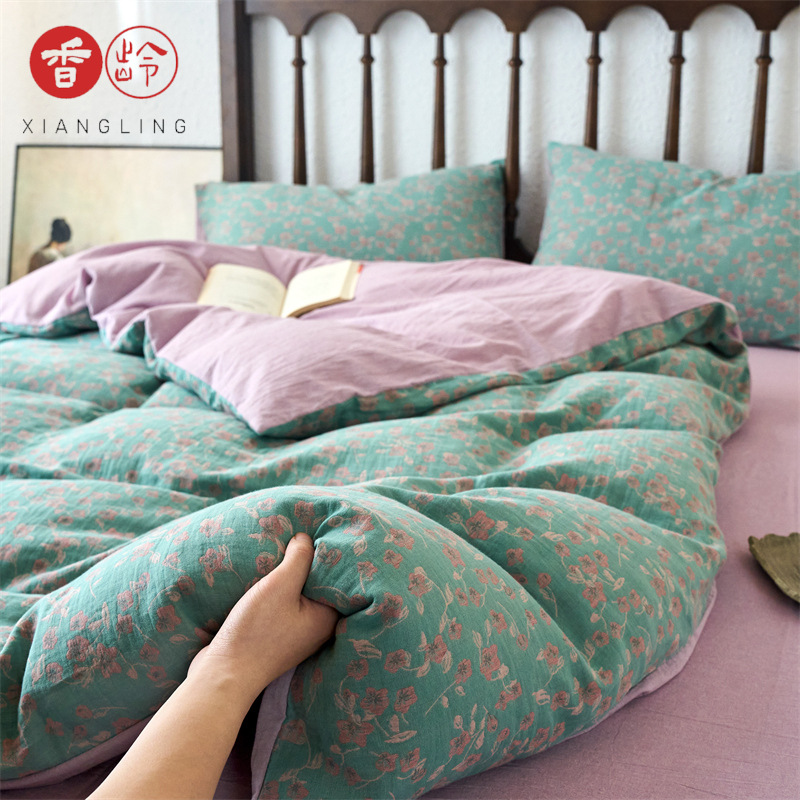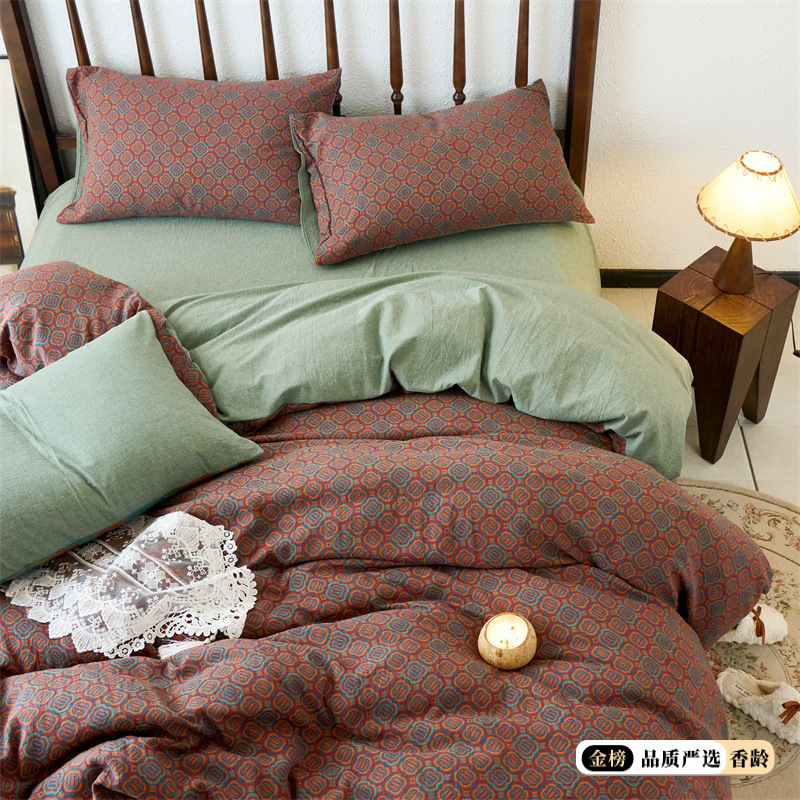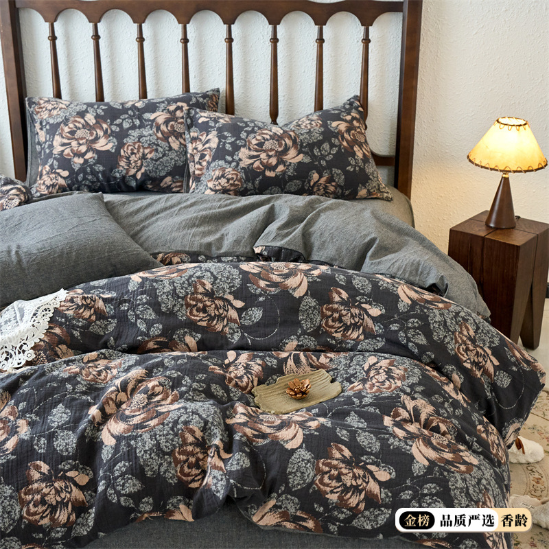 Главная страница > Комплект из четырех предметов из хлопчатобумажной двухслойной пряжи класса А, высококачественный жаккардовый двусторонний комплект из чистого хлопка и марли в стиле ретро, пододеяльник