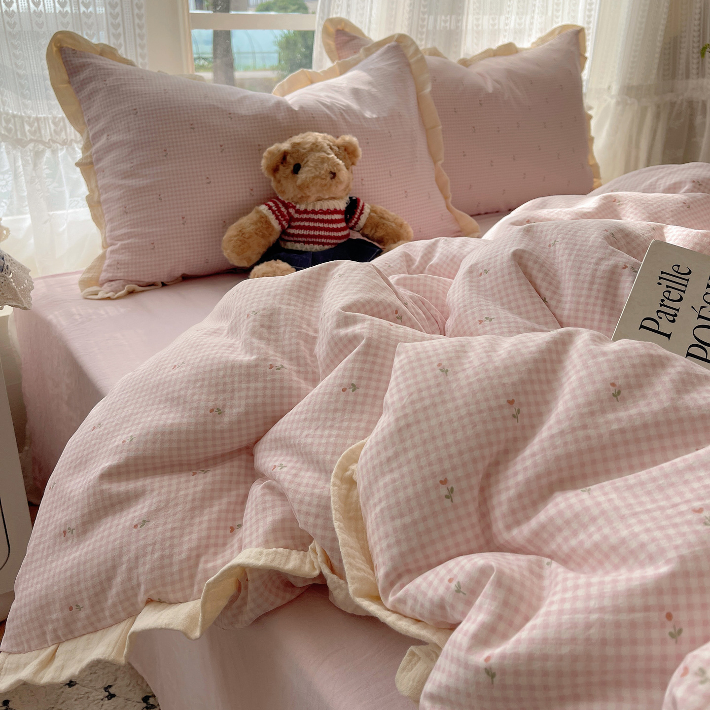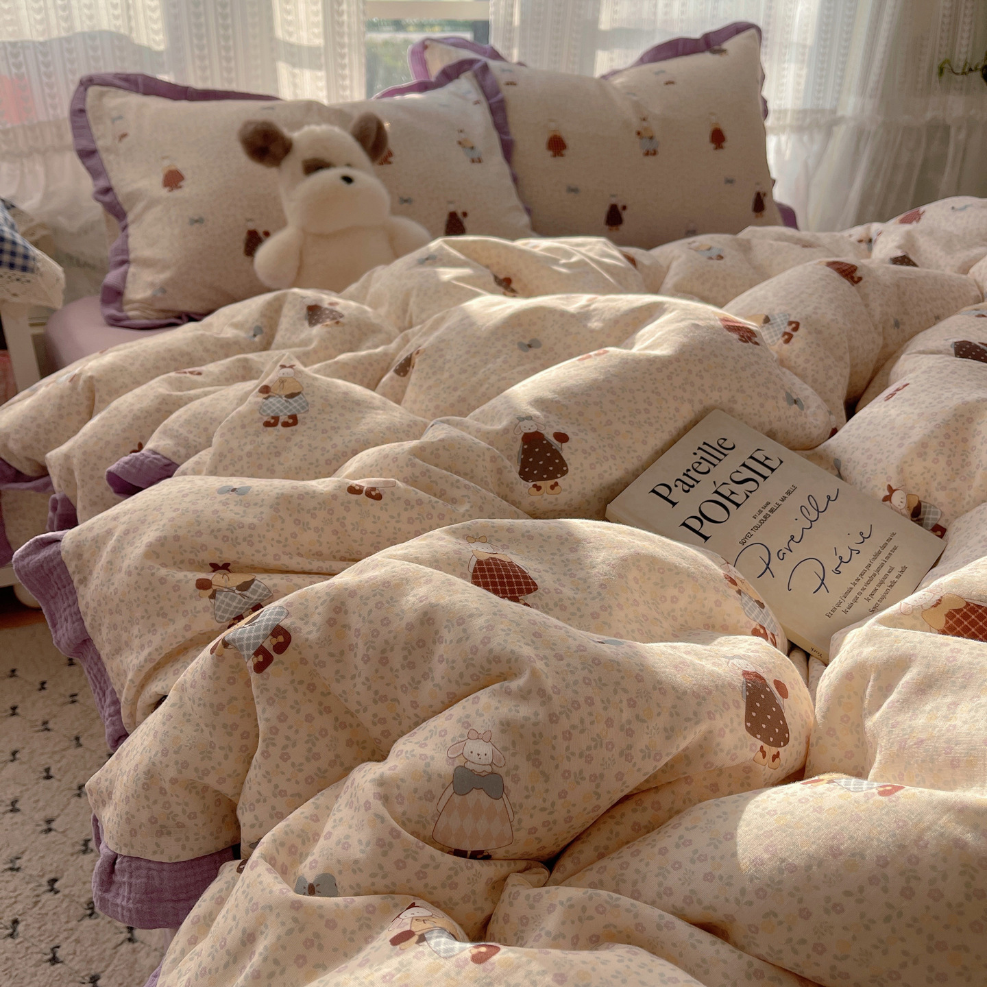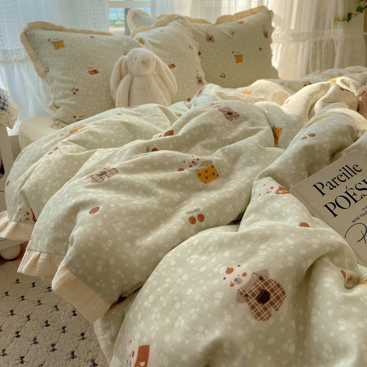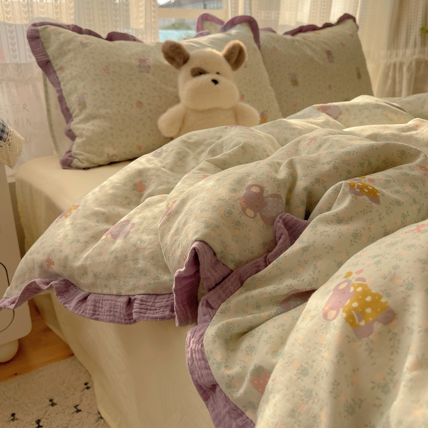 Французское постельное белье класса А, маленькое, свежее, стираное, комплект из четырех предметов, двухслойная марля, кружевные простыни, пододеяльник, комплект из трех предметов для общежития, 4