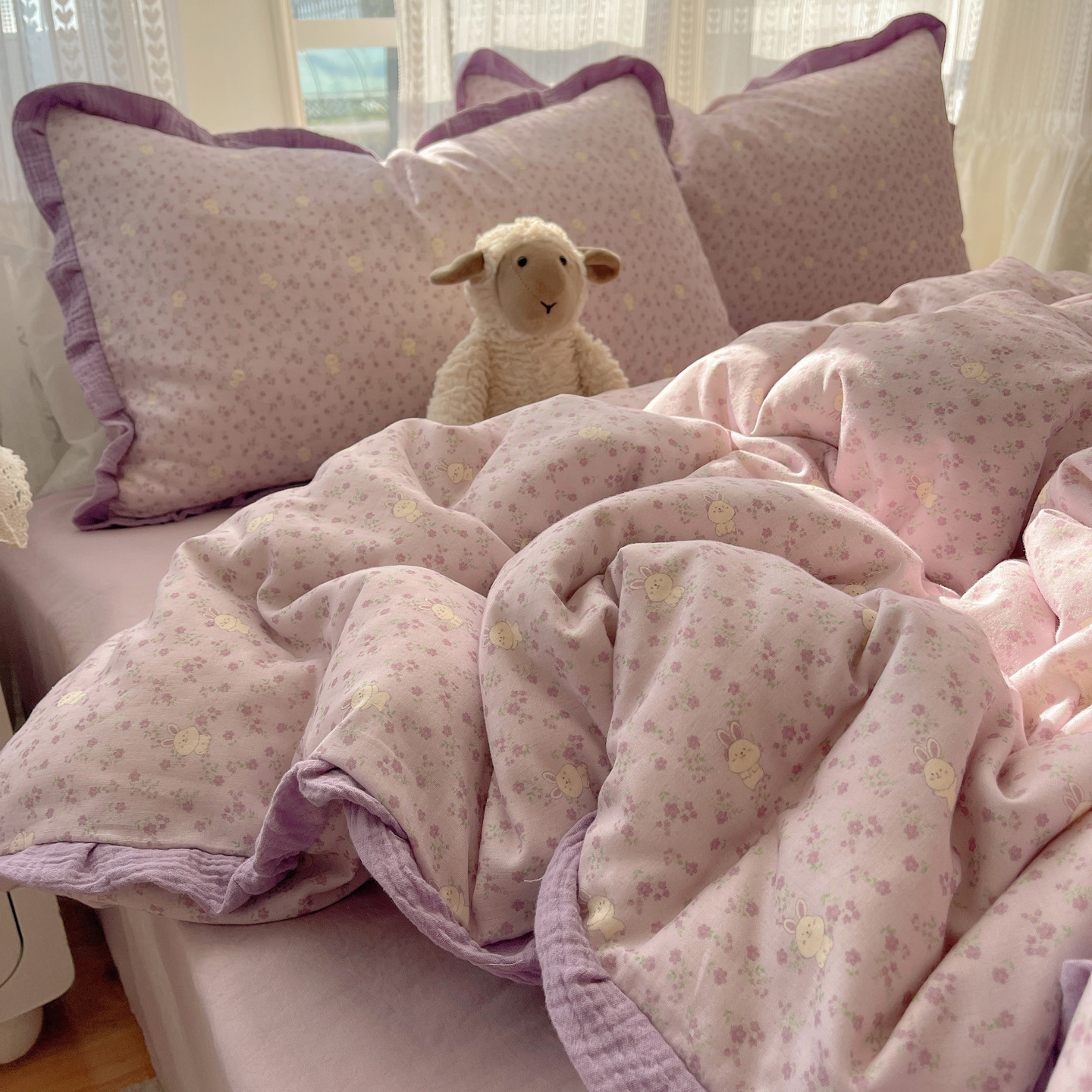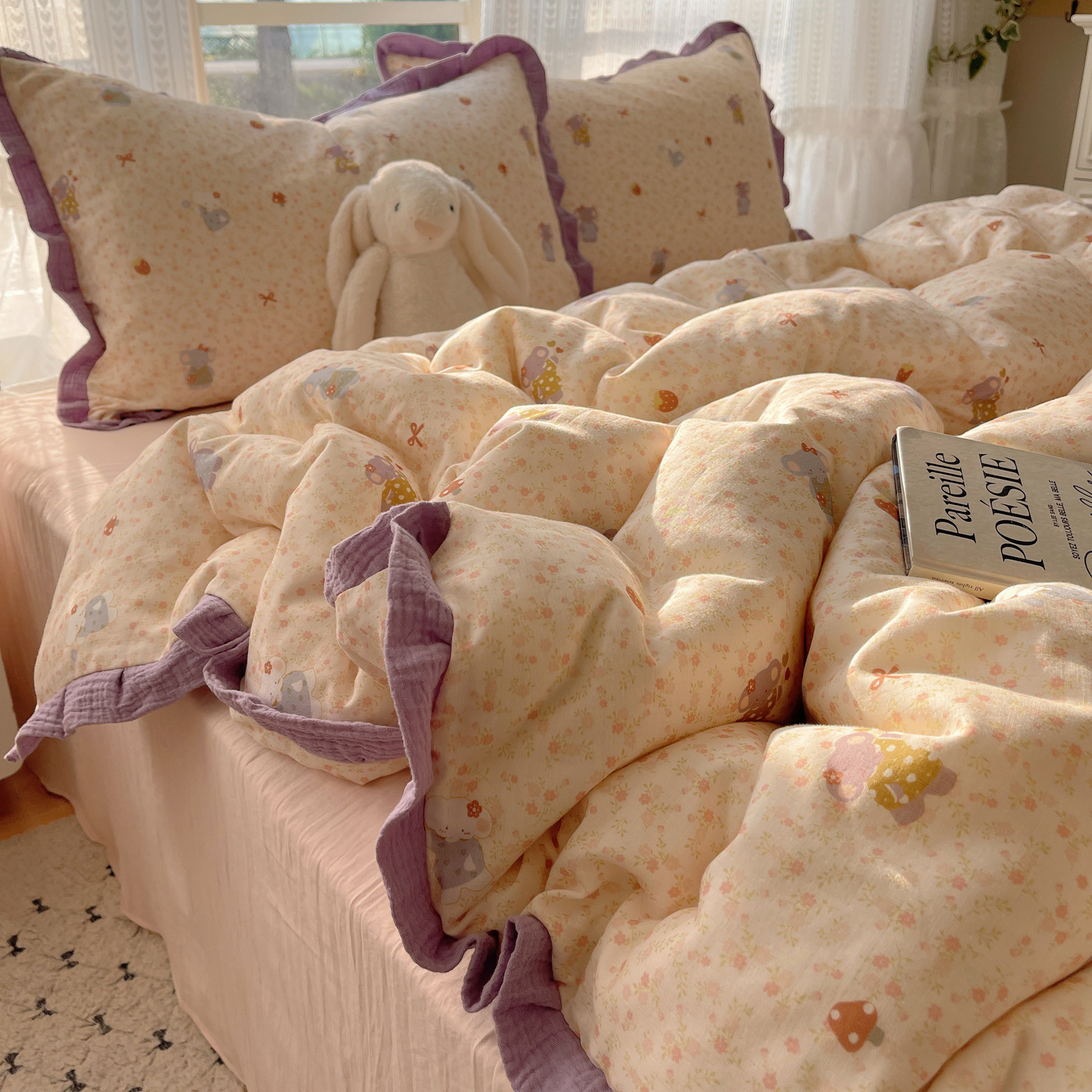 Главная страница > Французское постельное белье класса А, маленькое, свежее, стираное, комплект из четырех предметов, двухслойная марля, кружевные простыни, пододеяльник, комплект из трех предметов для общежития, 4