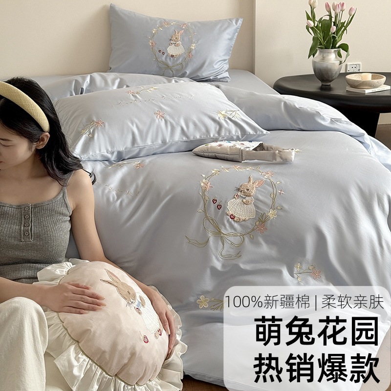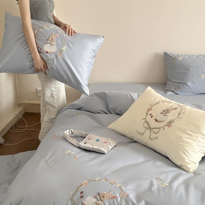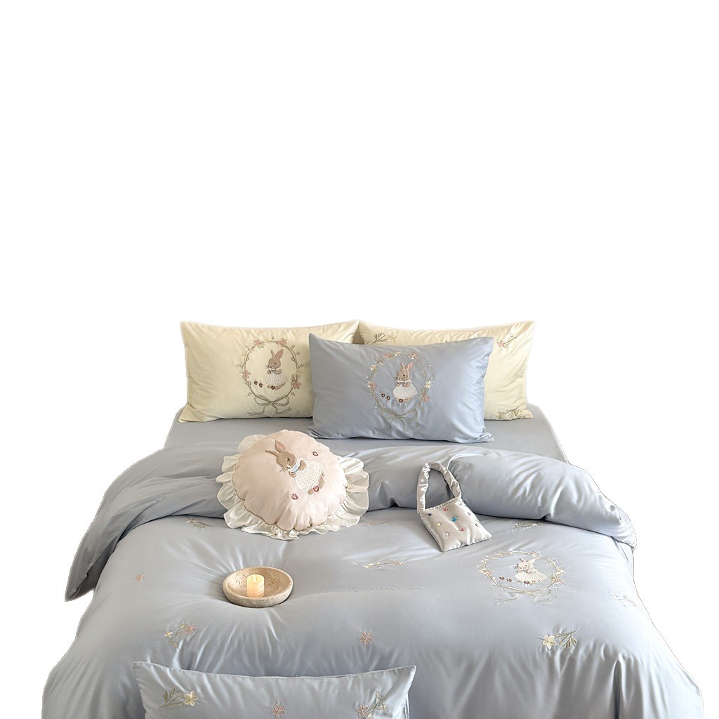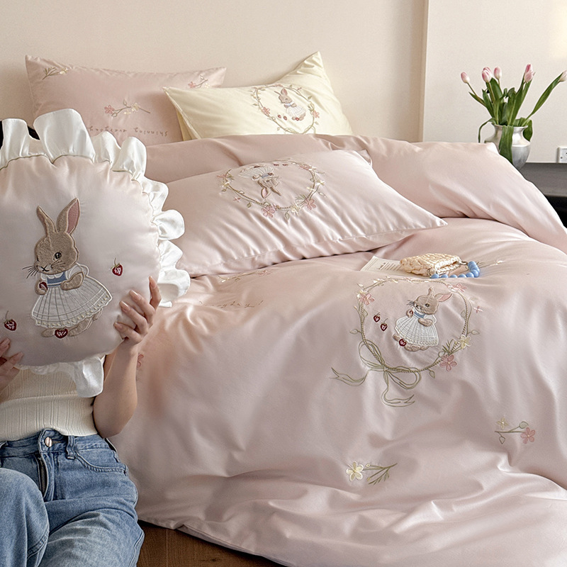 Главная страница > Набор постельного белья из длинноволокнистого хлопка Girly Heart 100S, 3 или 4 предмета, с вышивкой милого кролика, чистый хлопок, новые постельные принадлежности