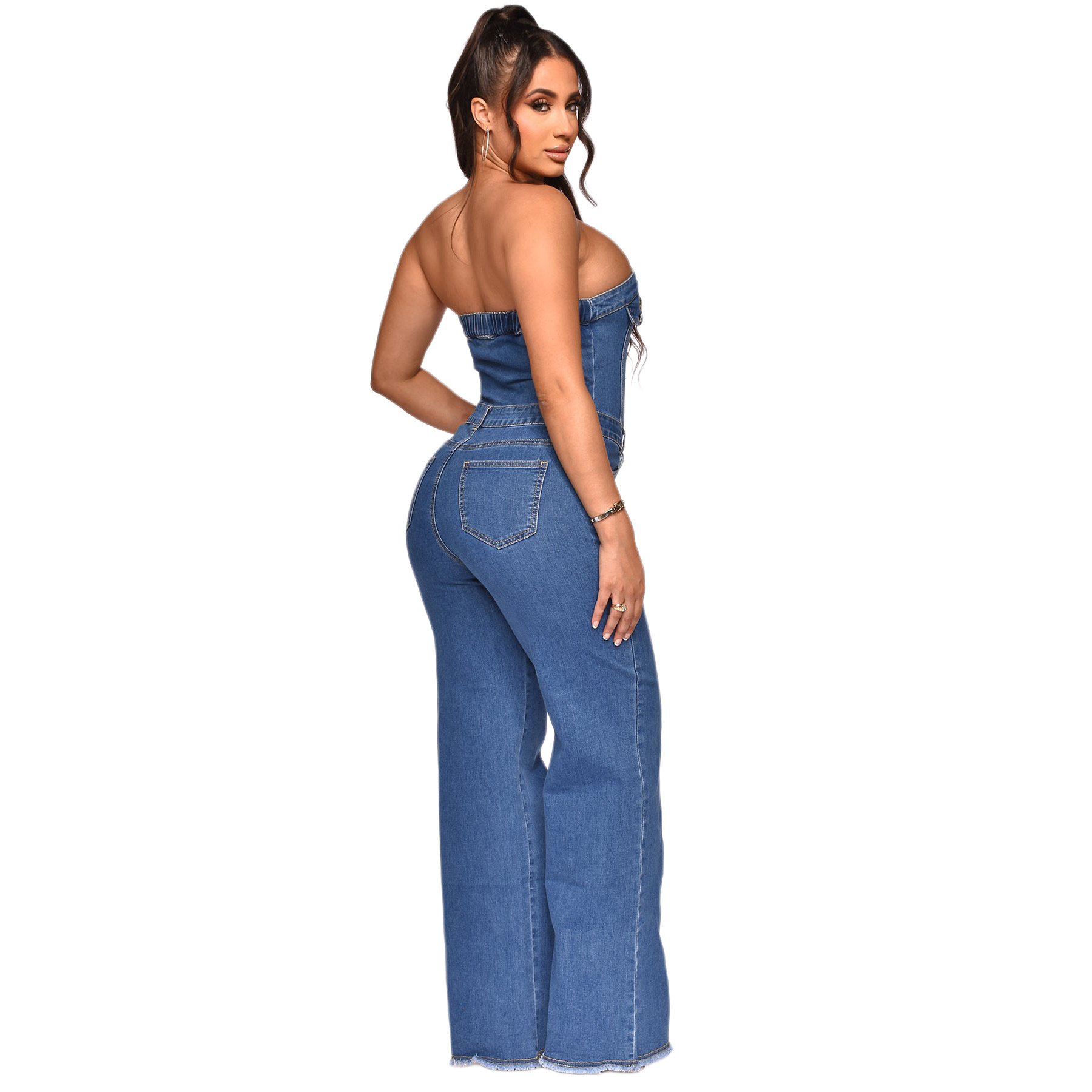 3542 Европейская и американская женская одежда Amazon Новый трубчатый топ с открытыми плечами Тонкий облегающий джинсовый комбинезон с микро-рогами