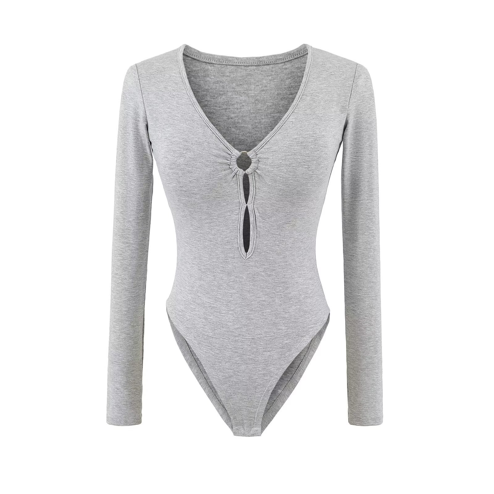 Главная страница > Горячая девушка с чистым V-образным вырезом с длинным рукавом комбинезон сексуальный ремень нагрудный коврик тонкая тонкая рубашка с полым дном 25 весна и осень новая