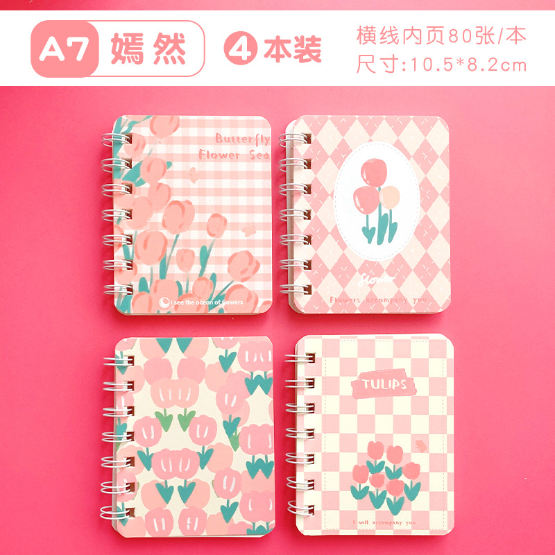 Блокнот A7 с койл-скрепкой в стиле ins, серия цветов, тюльпан, маленький блокнот, стильный многофункциональный блокнот для студентов