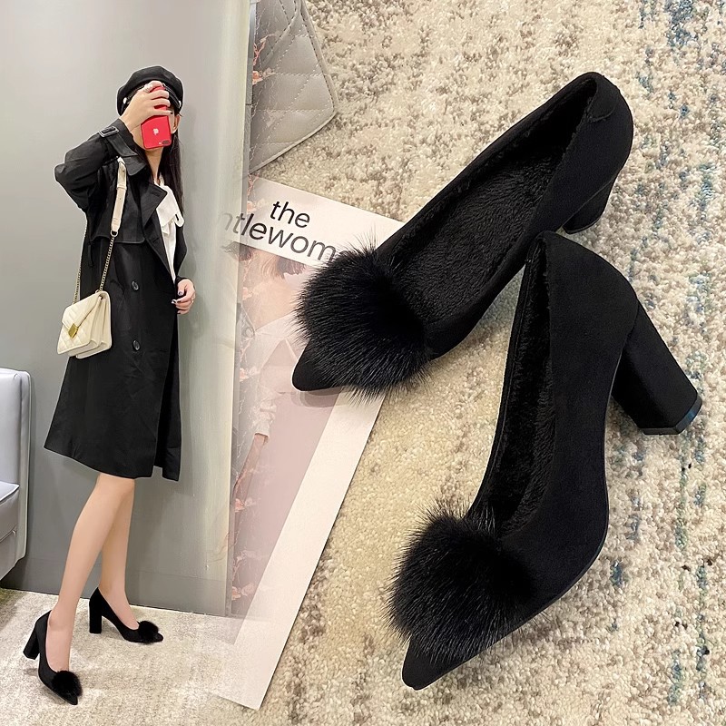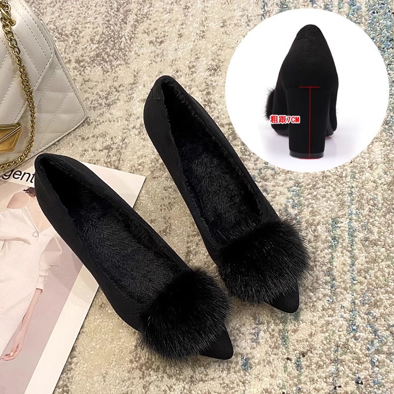 Главная страница > Женские зимние плюшевые туфли на флисовой подкладке Туфли на хлопковой подкладке 2023 новые однослойные туфли из норки на высоком каблуке с острым носком Горох обувь для мамы