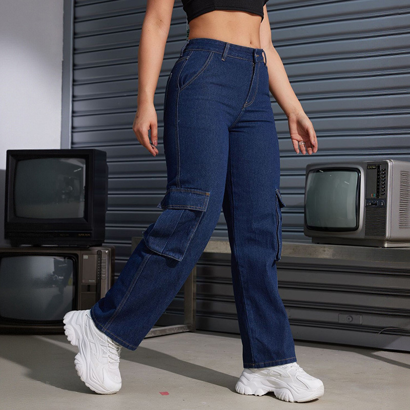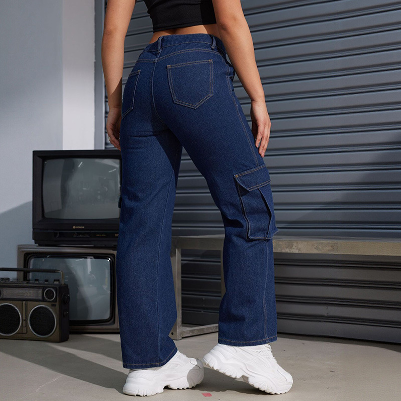 Американский трансграничный новый стиль внешней торговли женские повседневные джинсы с высокой талией карман раскладушка прямые джинсы брюки