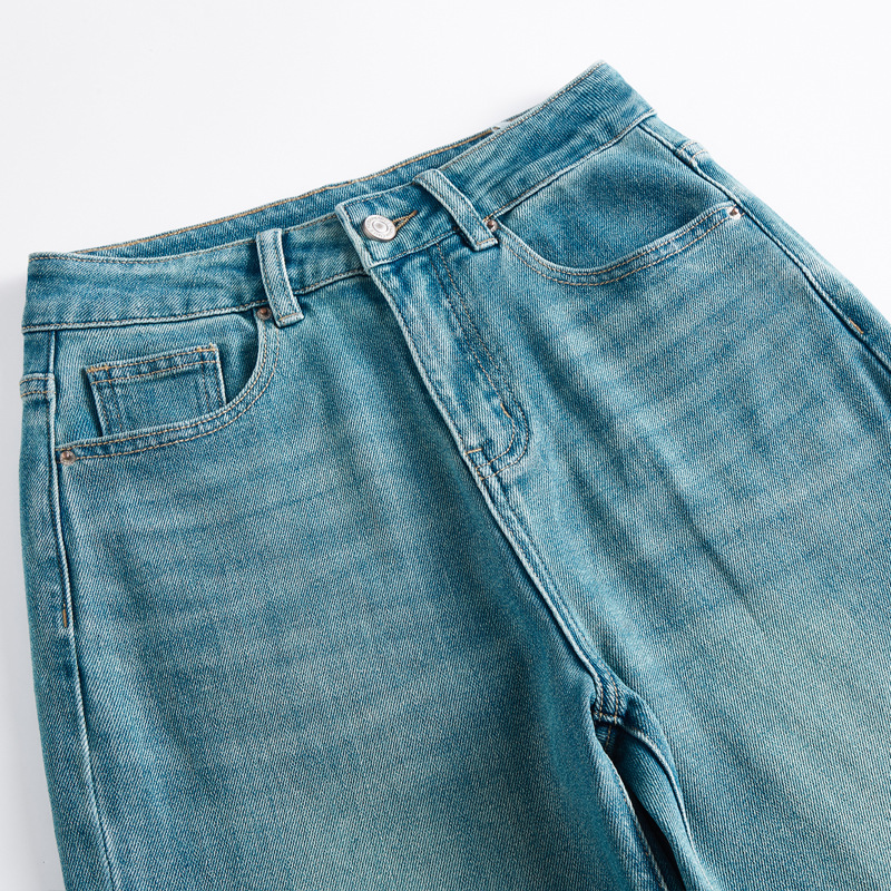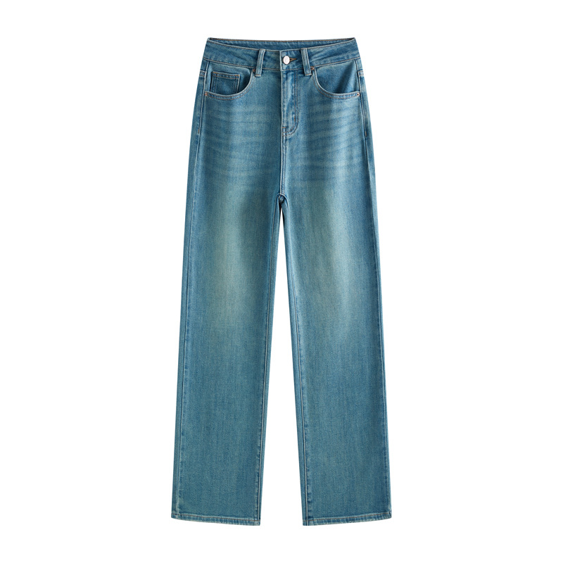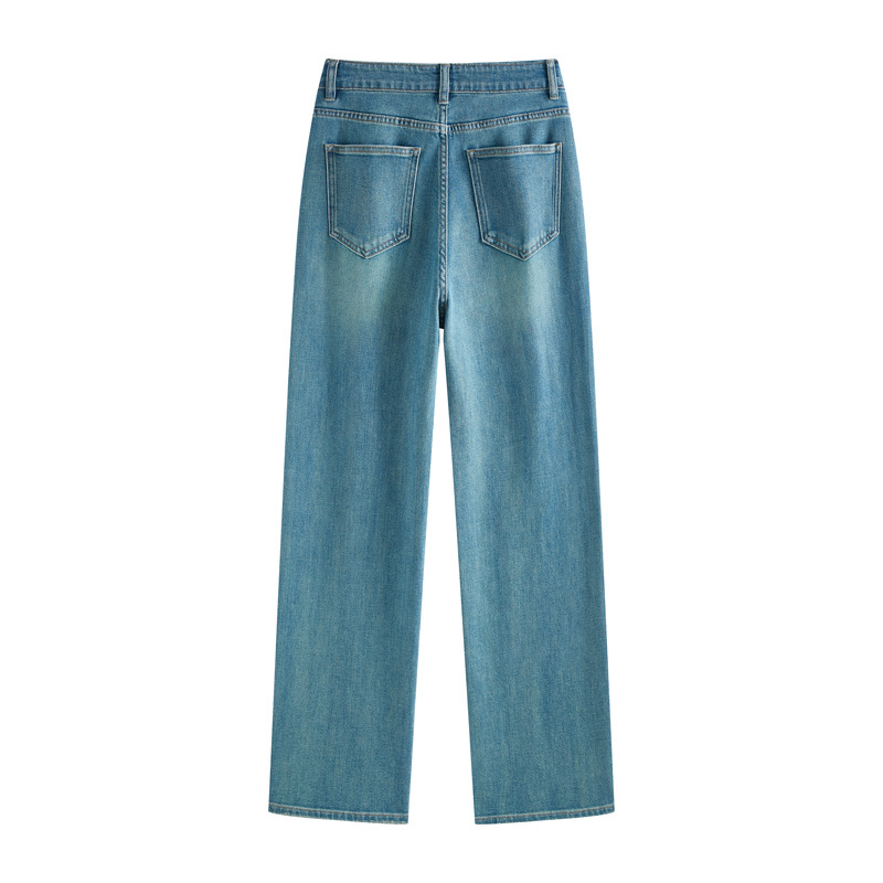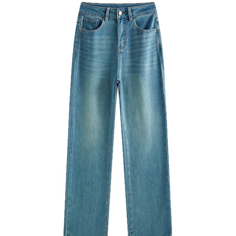 Главная страница > Синие джинсы с высокой талией для женщин, новинка 2025 года, винтажные, с эффектом потертости, свободные, стройнящие, широкие брюки, длиной в пол, с коротким рукавом