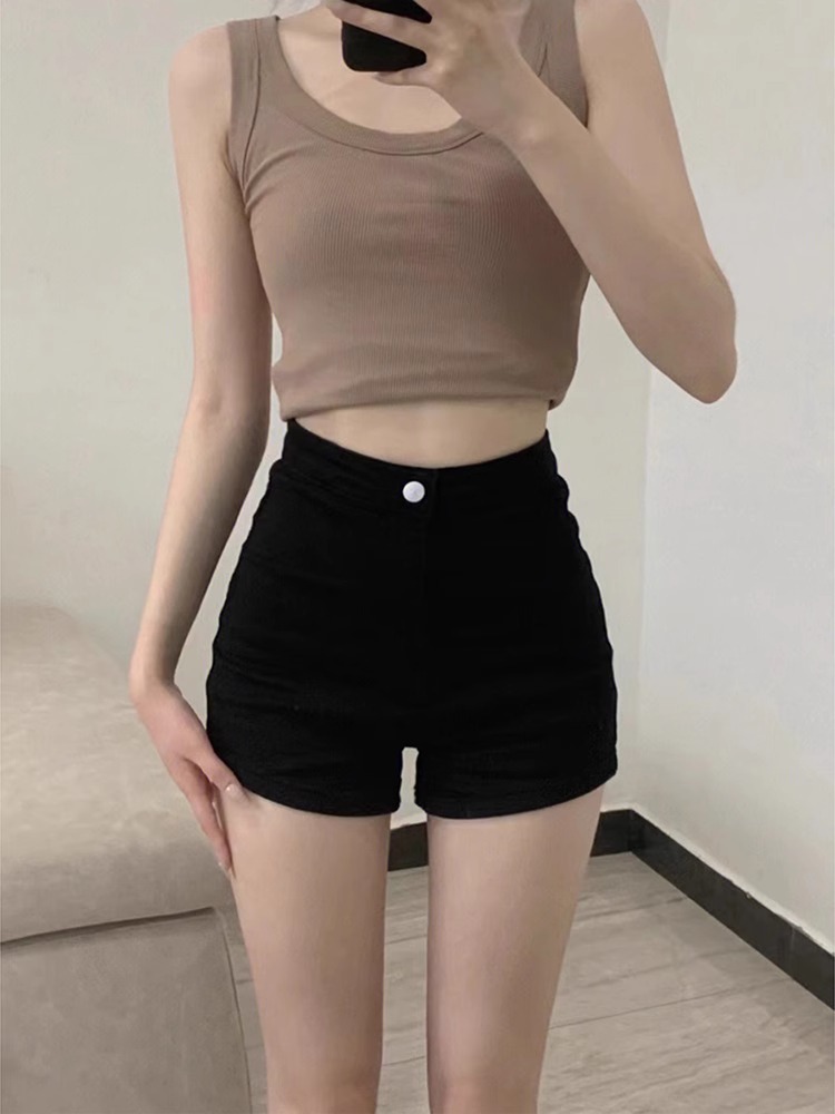 Главная страница > Лето 2025 Черные эластичные джинсовые шорты женские большие размеры бедра дикие ноги длинные горячие штаны с высокой талией