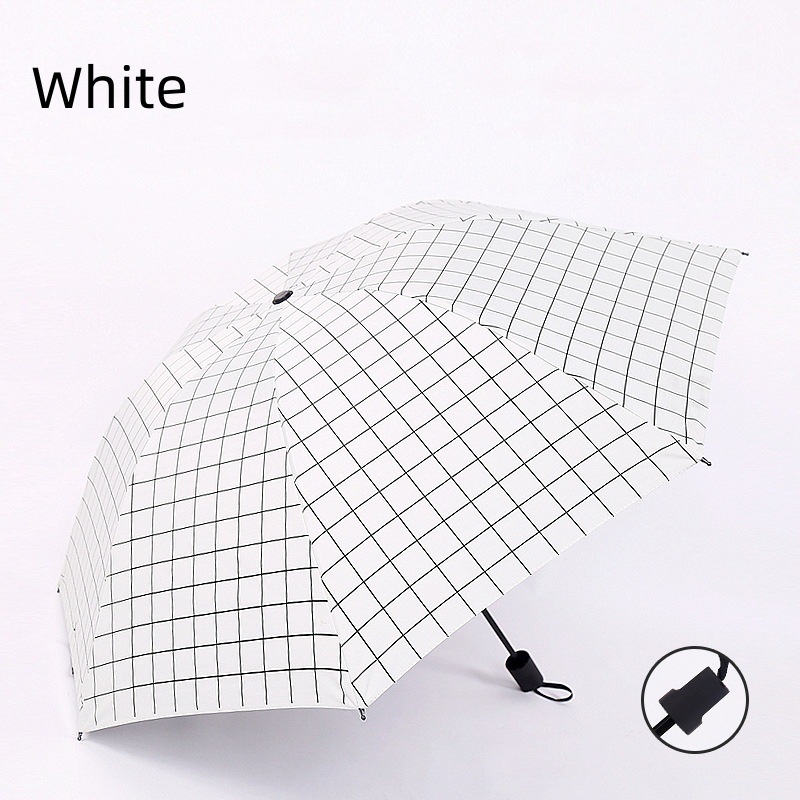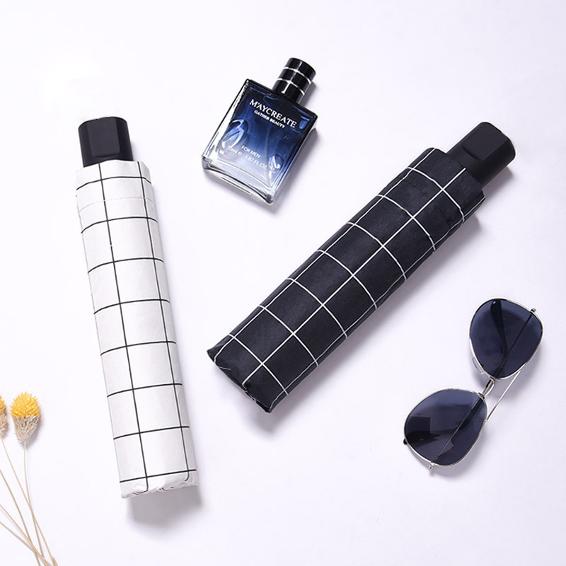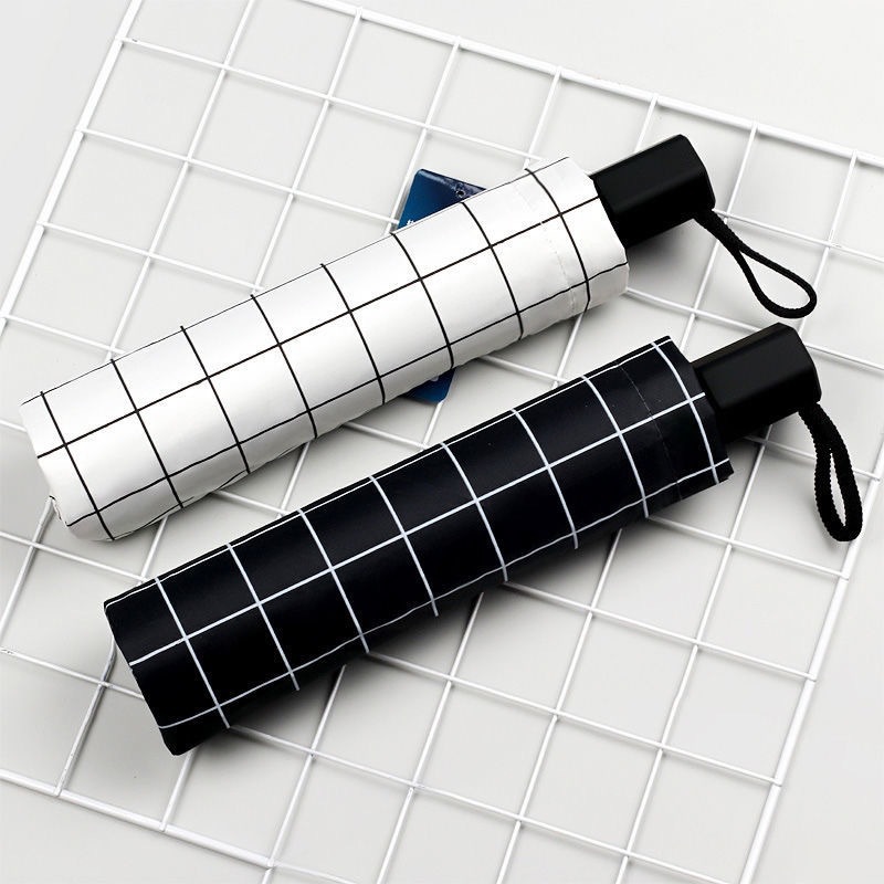 Главная страница > Новый клетчатый Зонт черный клей Защита от солнца солнцезащитный козырек Дождь двойного назначения три складных зонта автоматический солнцезащитный Зонт пользовательский рекламный логотип