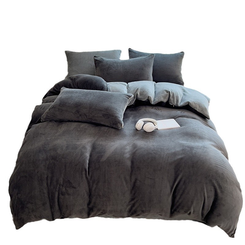 Плюс бархатное молоко, набор из четырех частей, хрустальный бархат, двойное одеяло, утолщенное теплое белье, студенческое общежитие, набор из трех частей осенью и зимой