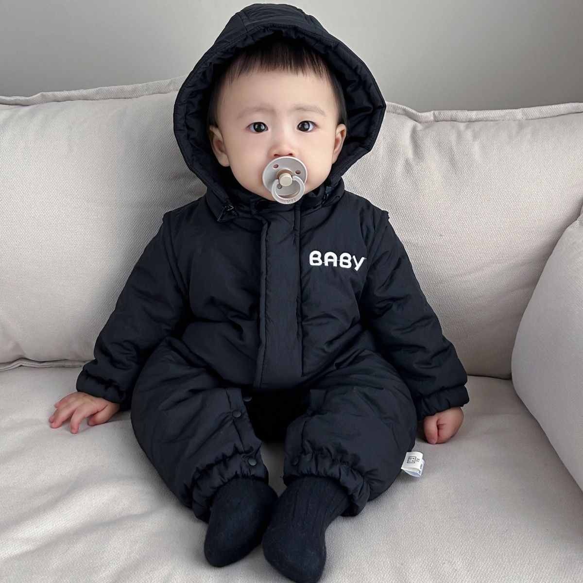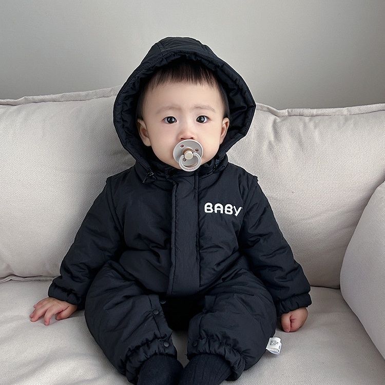 Главная страница > Корейский стиль для маленьких мальчиков и девочек, осенне-зимний комбинезон, одежда для младенцев, супер милая рабочая одежда с капюшоном, стильная куртка, утепленное хлопковое пальто.