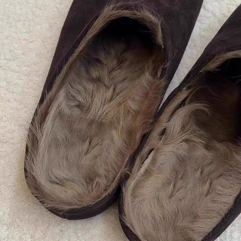 Главная страница > Корейская версия 2024, осенне-зимние новые плюшевые полутапочки для женщин, универсальные теплые туфли Birkenstock из натуральной кожи с разрезом на носке