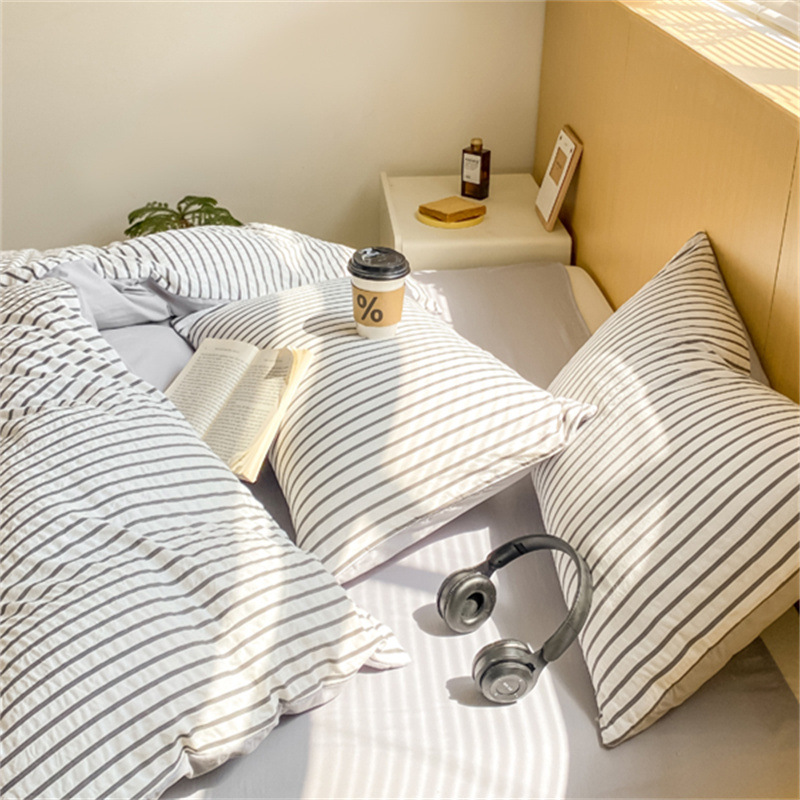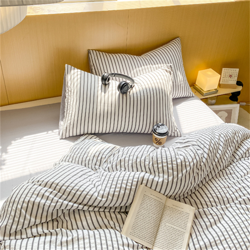 Стильный комплект постельного белья из хлопка с полосками: четырехкомпонентный для студенческого общежития, трехкомпонентный комплект для кровати, пододеяльник, приятное к коже постельное белье