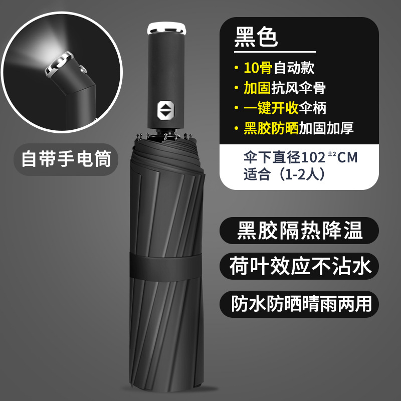 10-костный полностью автоматический виниловый фонарик-обсидиановый черный